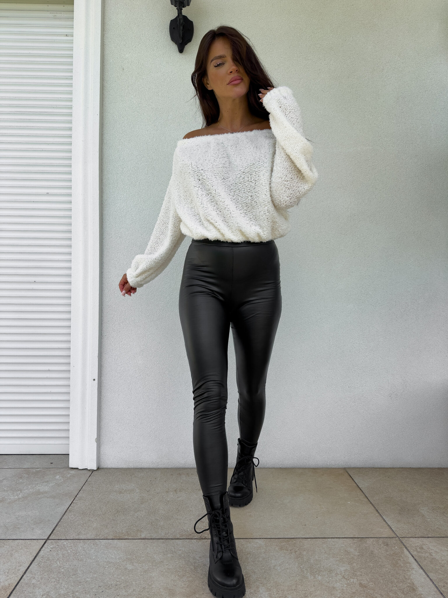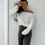 Luźna bluza UNDER z szerokim dekoltem typu „hiszpanka”, który zmysłowo opada na ramiona. Długie rękawy zakończone elastycznymi ściągaczami zapewniają wygodę i styl.