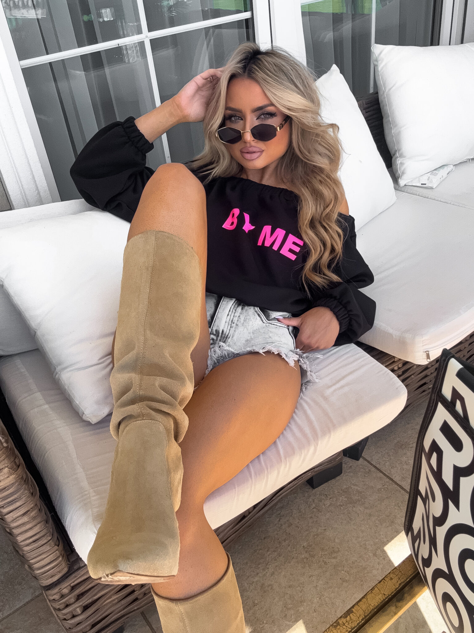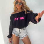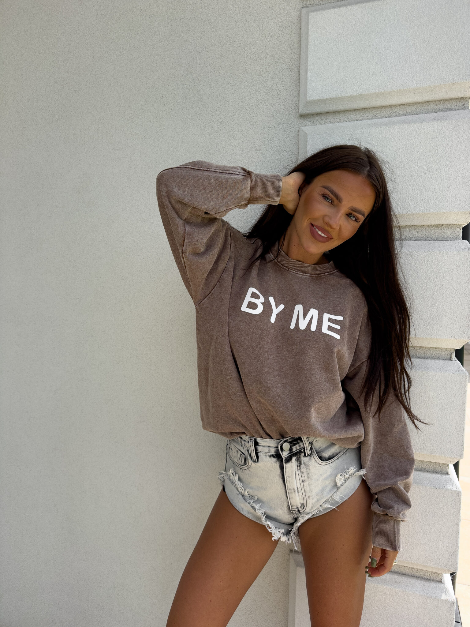 Luźna bluza UNDER z szerokim dekoltem typu „hiszpanka”, który zmysłowo opada na ramiona. Z przodu zdobi ją napis „BY ME” w dużych literach. Długie rękawy zakończone elastycznymi ściągaczami zapewniają wygodę i styl.