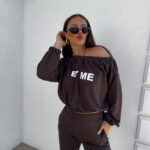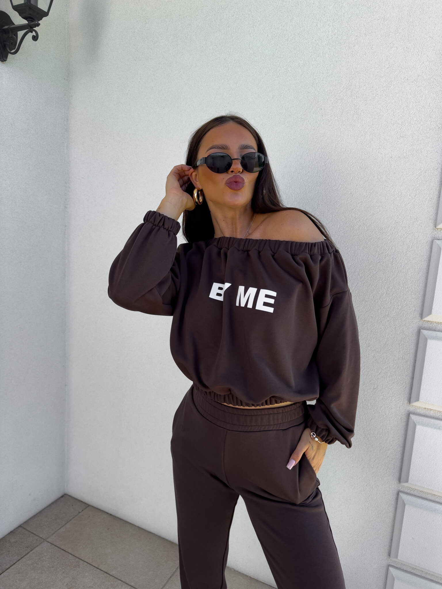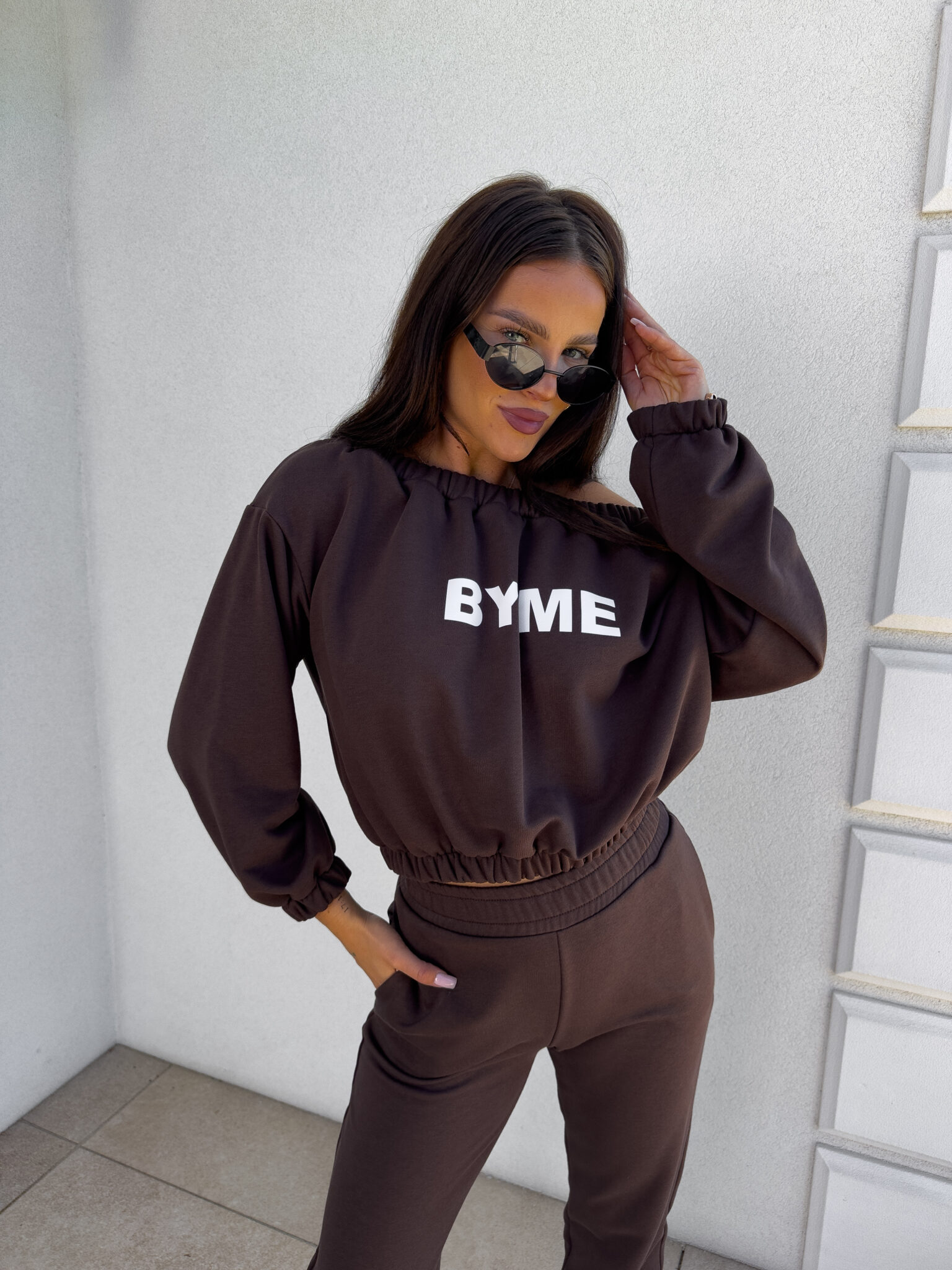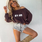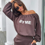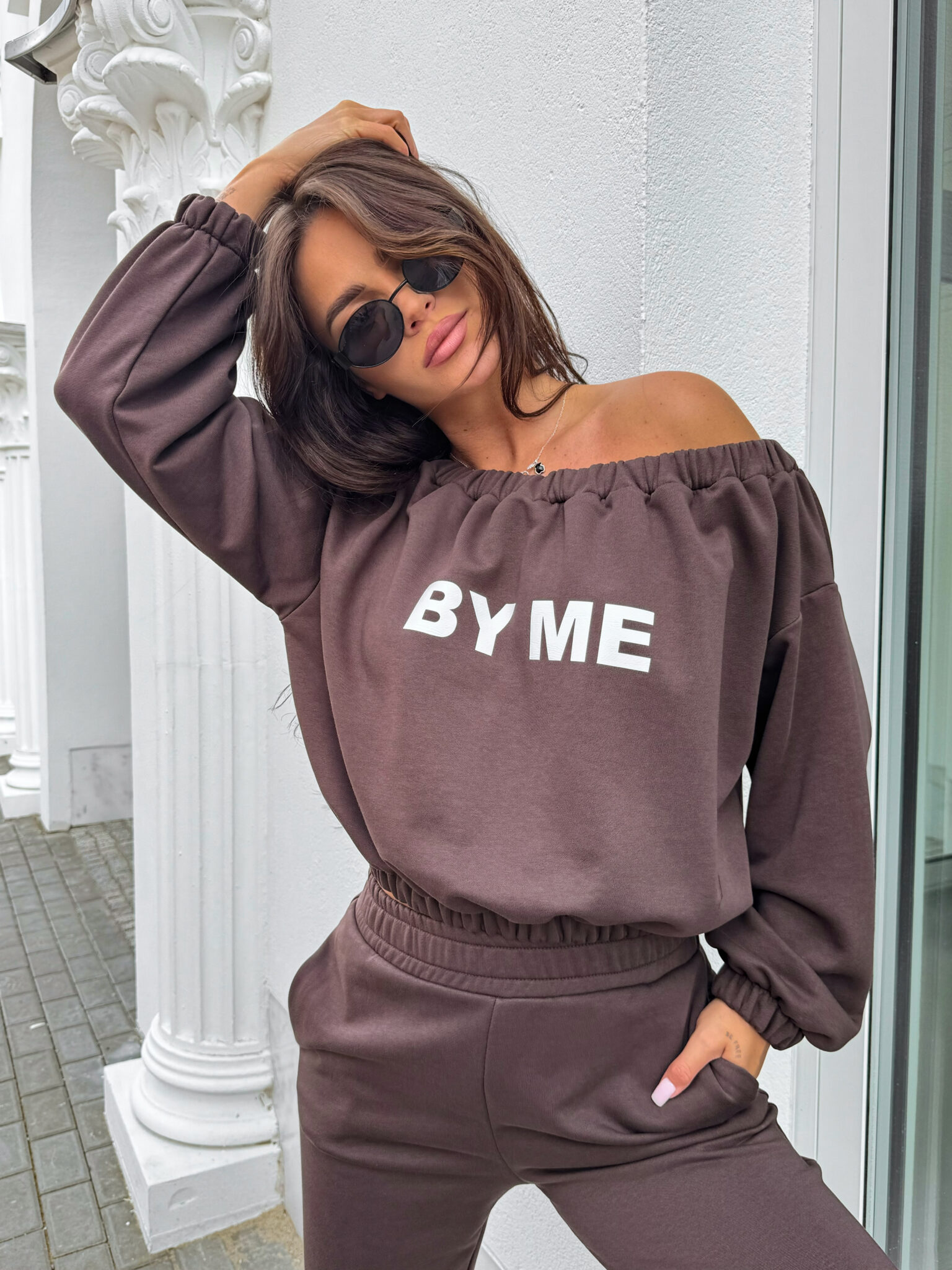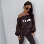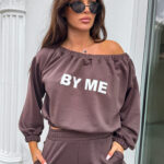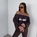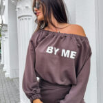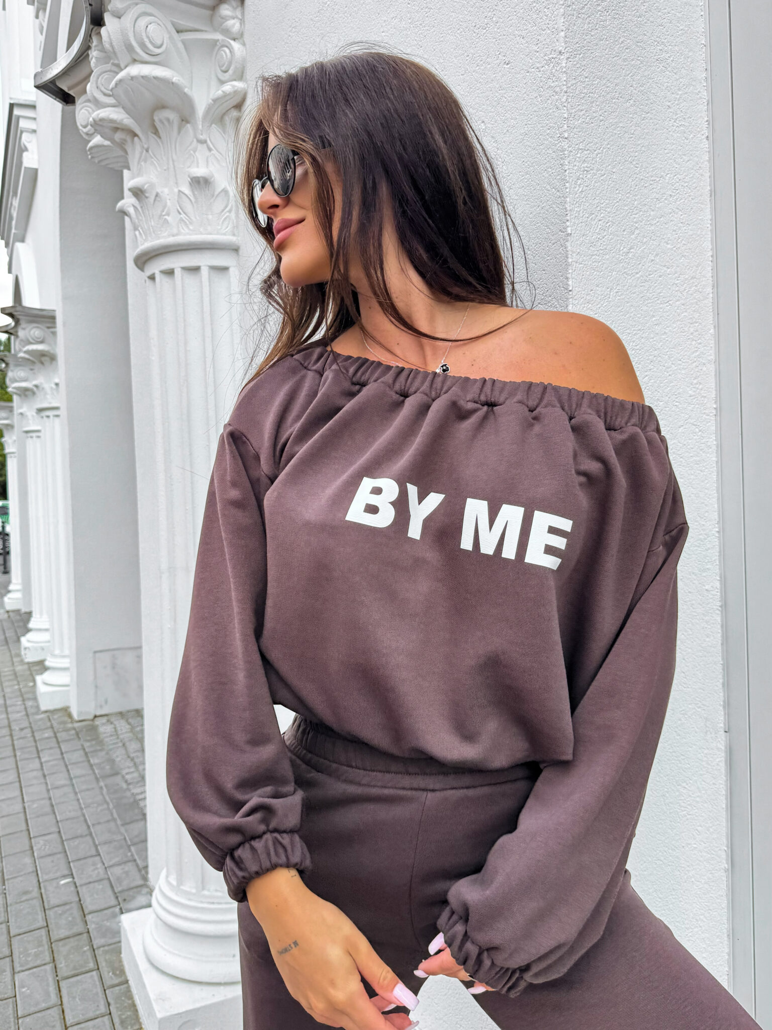 Luźna bluza UNDER z szerokim dekoltem typu „hiszpanka”, który zmysłowo opada na ramiona. Z przodu zdobi ją napis „BY ME” w dużych literach. Długie rękawy zakończone elastycznymi ściągaczami zapewniają wygodę i styl.