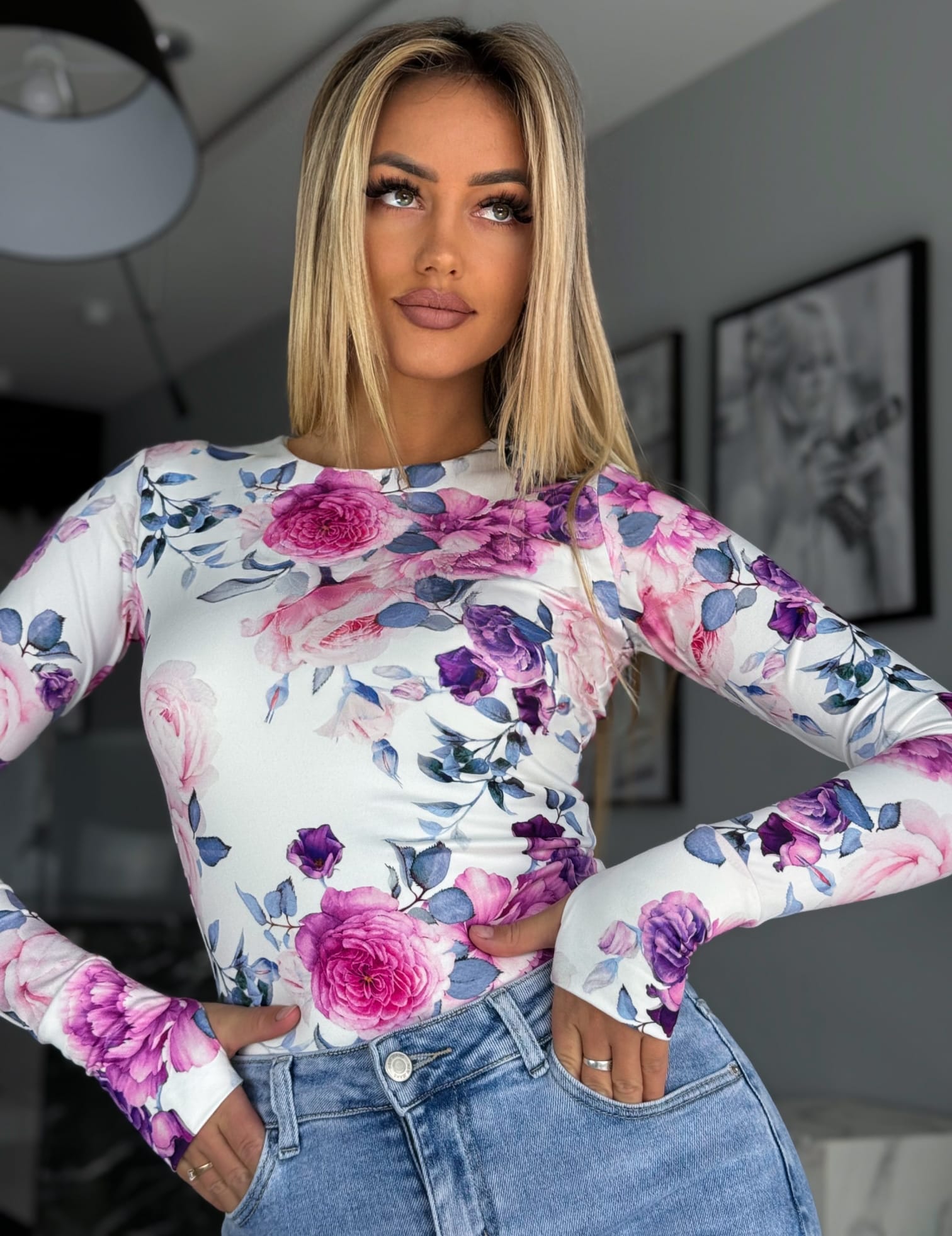 Bluzka CYNTHIA z dziurką na kciuk – biała w kwiaty