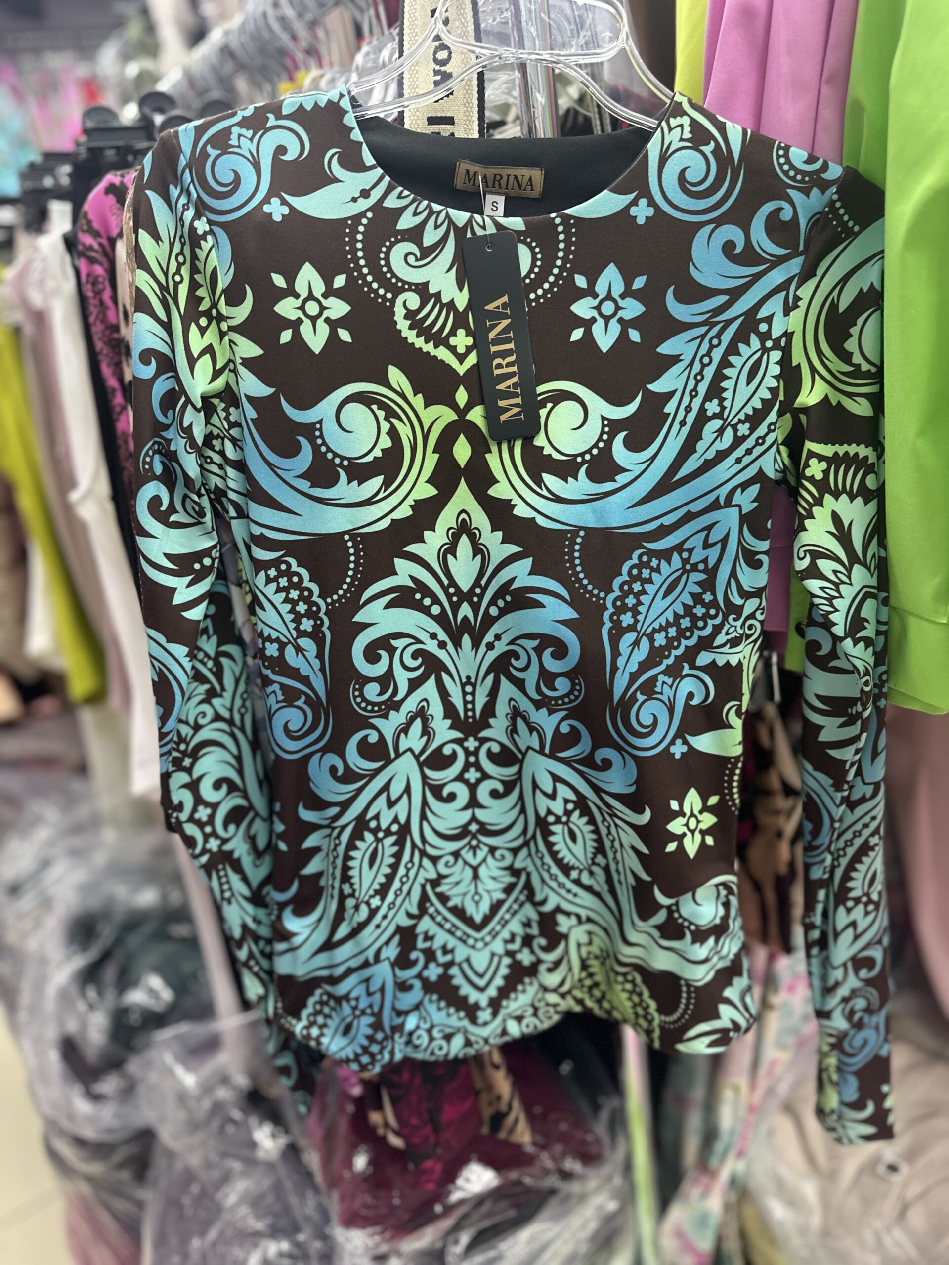 Bluzka CYNTHIA z dziurką na kciuk – turkus z czekoladą