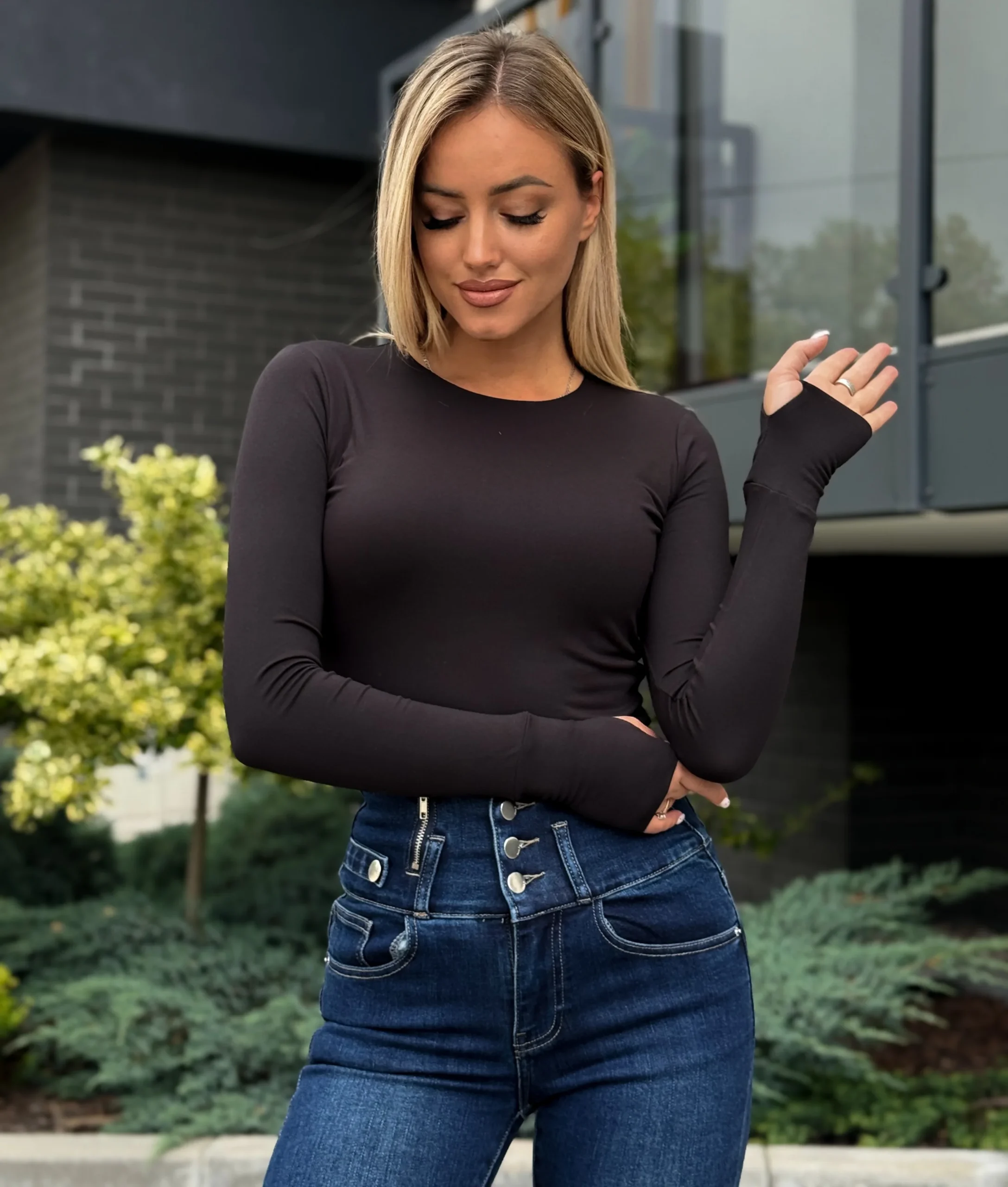 Bluzka CYNTHIA z dziurką na kciuk – czarna