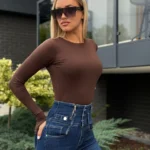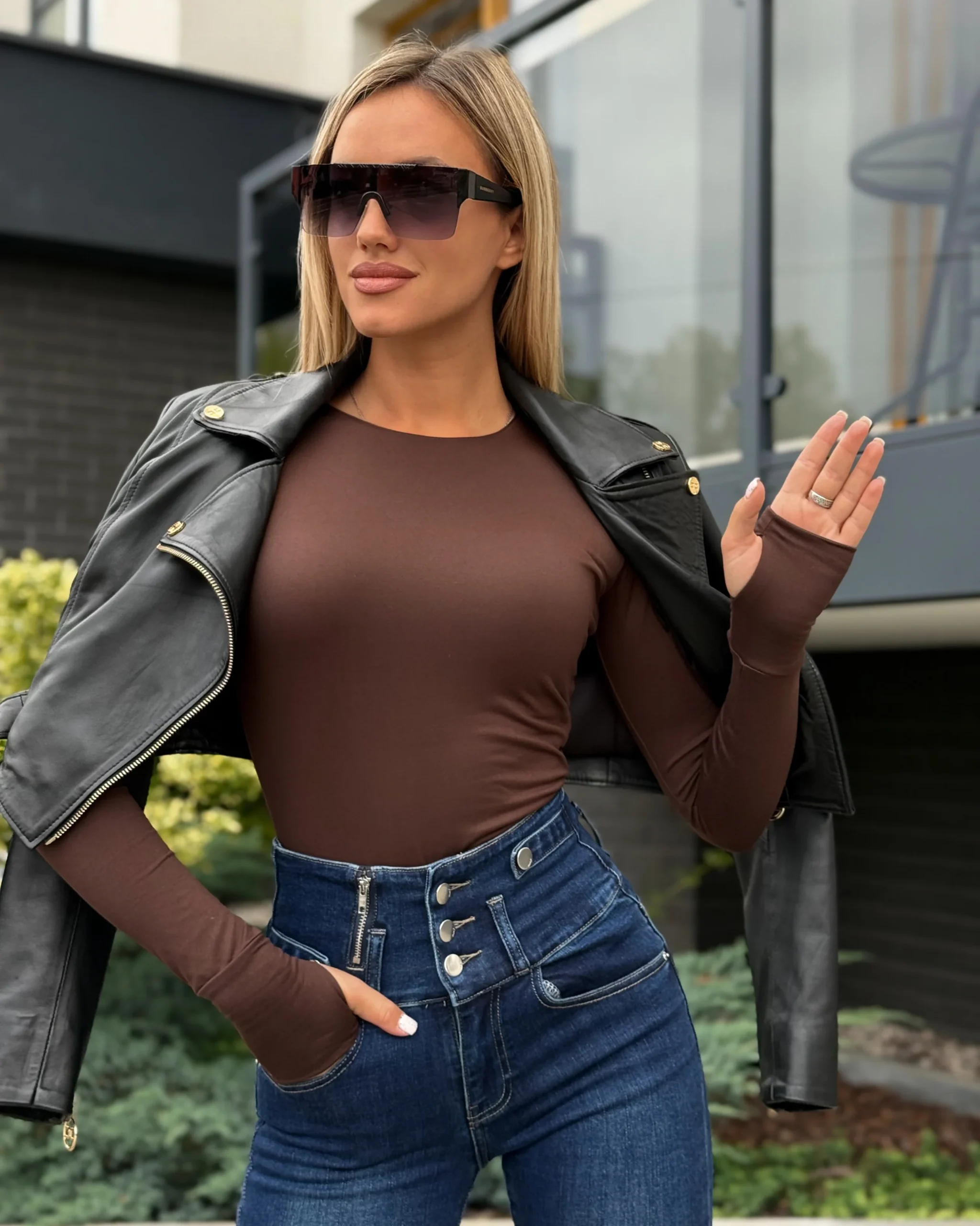 Bluzka CYNTHIA z dziurką na kciuk – czekoladowa