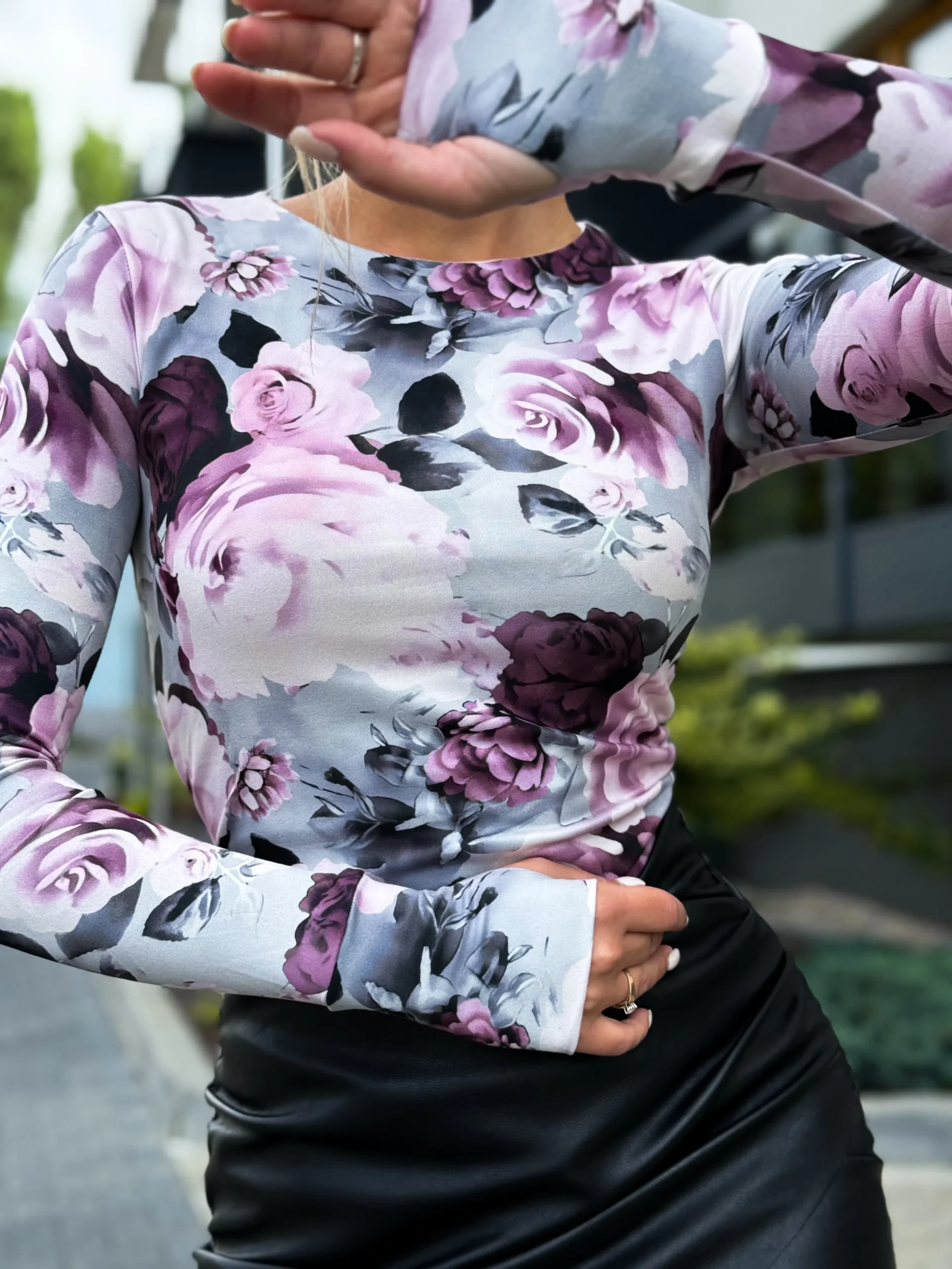 Bluzka CYNTHIA z dziurką na kciuk – kwiat liliowy