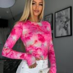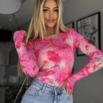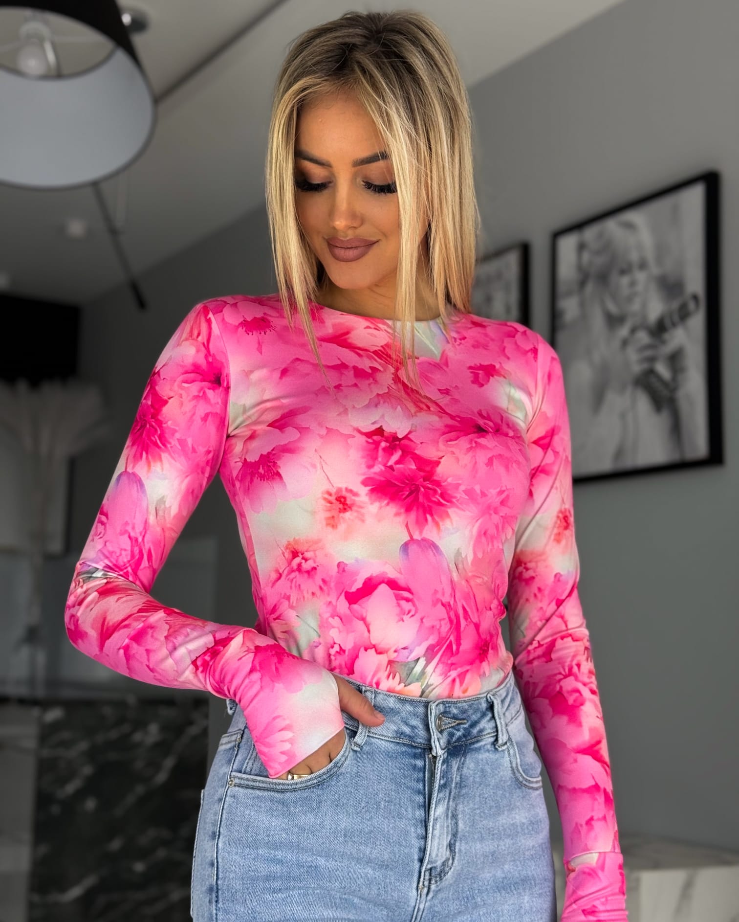 Bluzka CYNTHIA z dziurką na kciuk – różowa piwonie