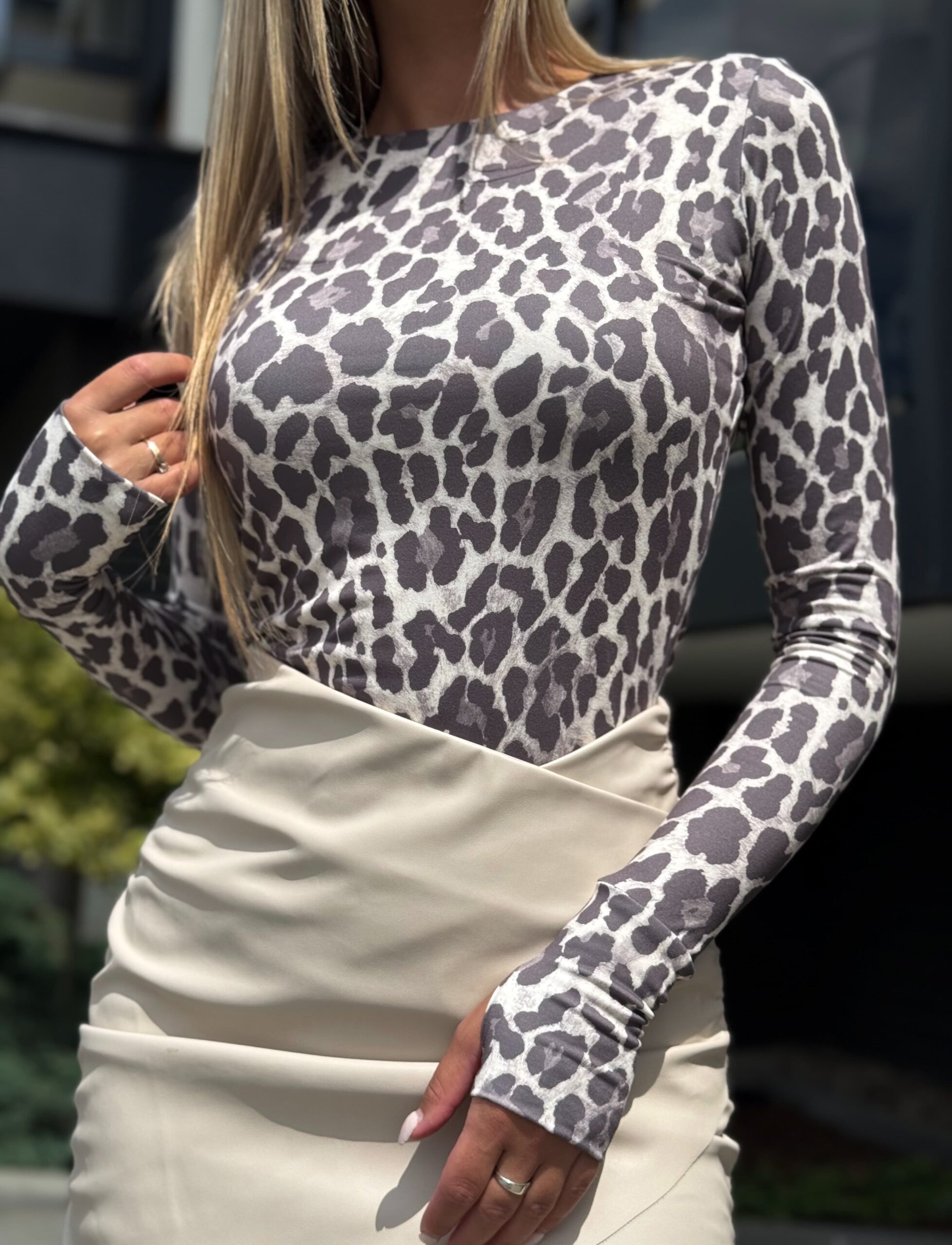 Bluzka CYNTHIA z dziurką na kciuk – szaro – beż