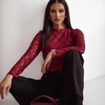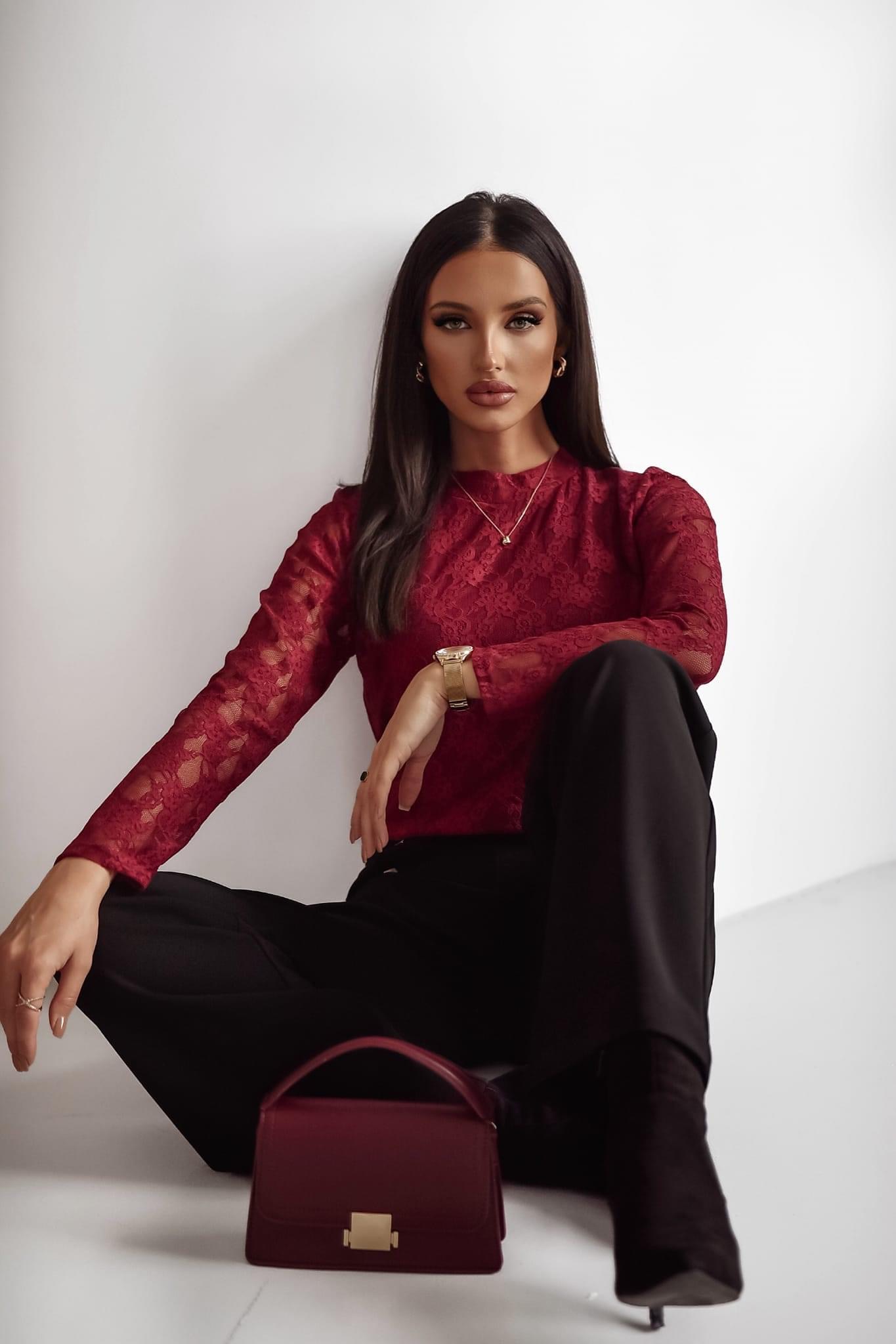 Bluzka koronkowa SARA – bordowa
