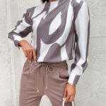 Bluzka koszulowa GIANNA koloru biało-kakaowego zdobiona różnokształtnymi mazami. Dekolt w kształcie mini stójki. Rękawki z mini bufką, które pięknie układają się na ramionach. Z tyłu bluzka jest zasuwana na suwak. Mankiety zapinane są na guzik. Kolor piękny, soczysty różowy. Bluzeczka idealna do eleganckich spodni eko skórkowych, spódnic, jeansów lub legginsów. Świetnie sprawdzi się do pracy w biurze, urzędzie oraz do stylizacji codziennych i biznesowych.