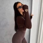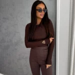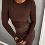 Kategoria: Bluzki Znaczników: bluzka, By Me, czekoladowa, dopasowany krój, Linda, logo, przód i tył z podwójnego materiału, rękaw typu long sleeve, rękawy z pojedynczego materiału