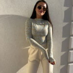 Bluzka SABRINA o dopasowanym kroju to idealna baza do wielu stylizacji. Posiada długie rękawy typu long sleeve oraz subtelną stójkę, która dodaje elegancji.
