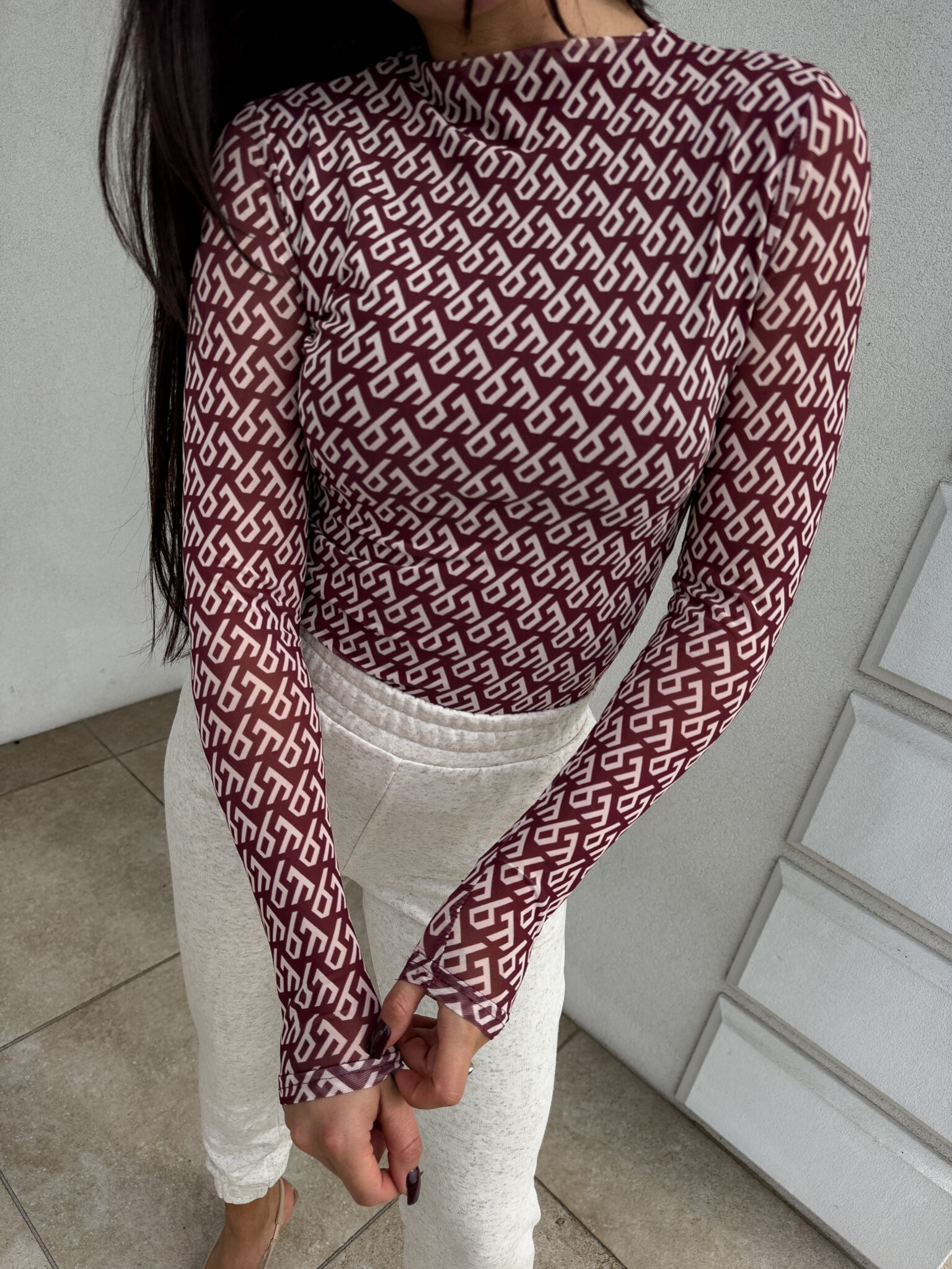 Bluzka SKIN o dopasowanym kroju wykonana jest z wyjątkowo delikatnej, przyjemnej w dotyku siateczki. Przód i tył posiadają subtelną podszewkę, która zapobiega prześwitywaniu. Model wyróżnia się długim rękawem typu long sleeve oraz delikatną stójką, nadającą całości eleganckiego charakteru.