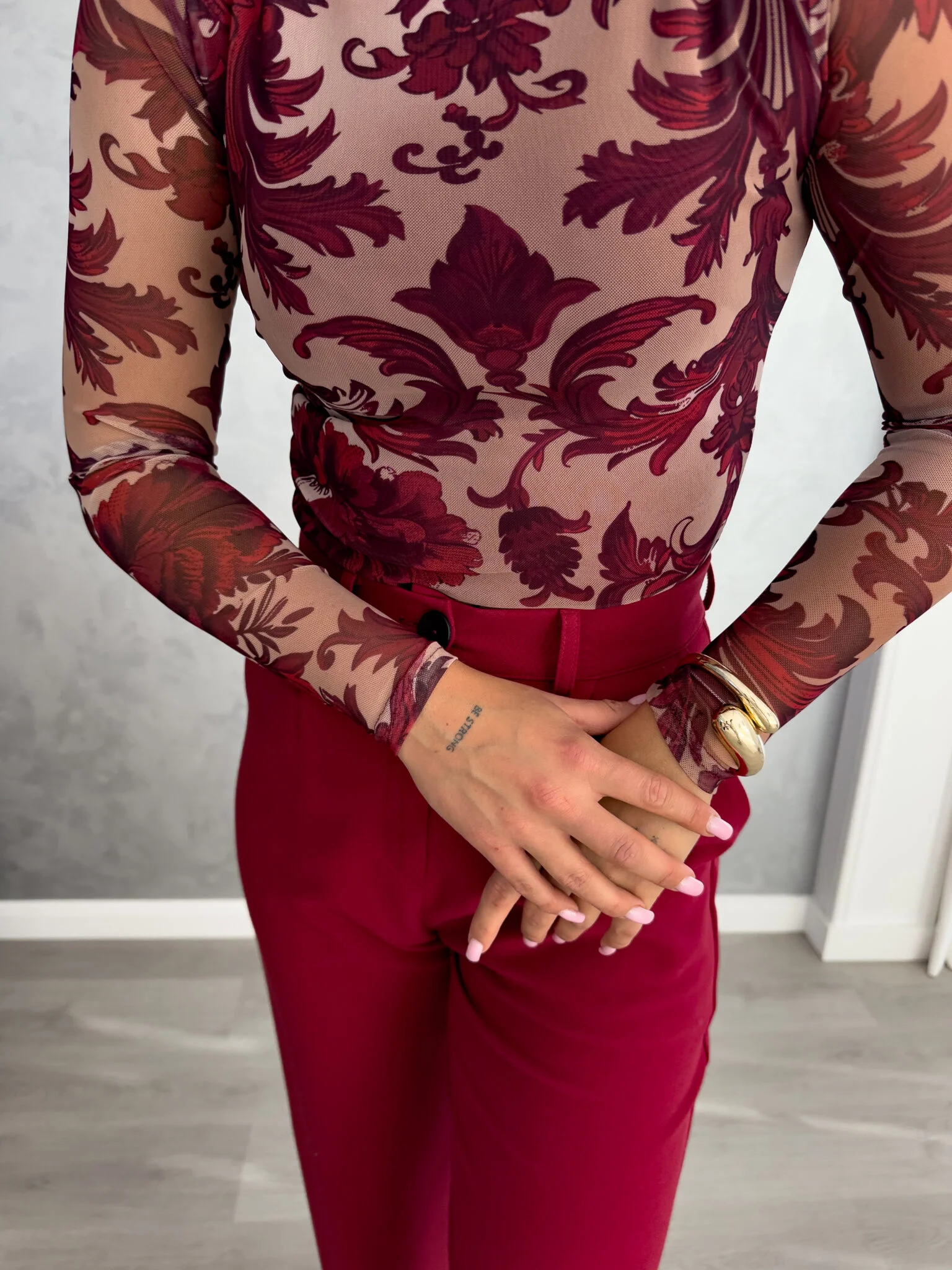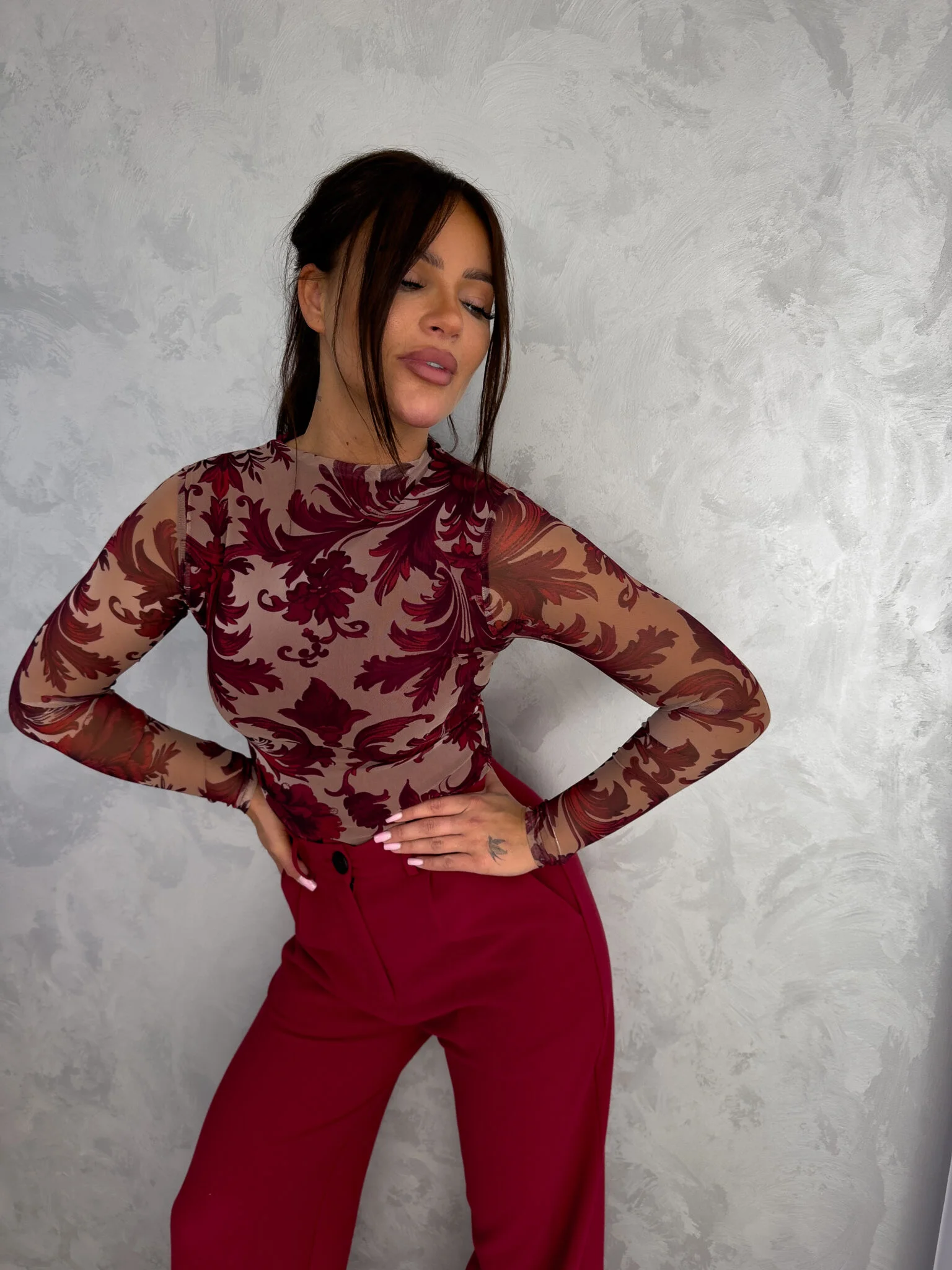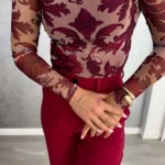 Bluzka SKIN IV transparent – wino – beżowa