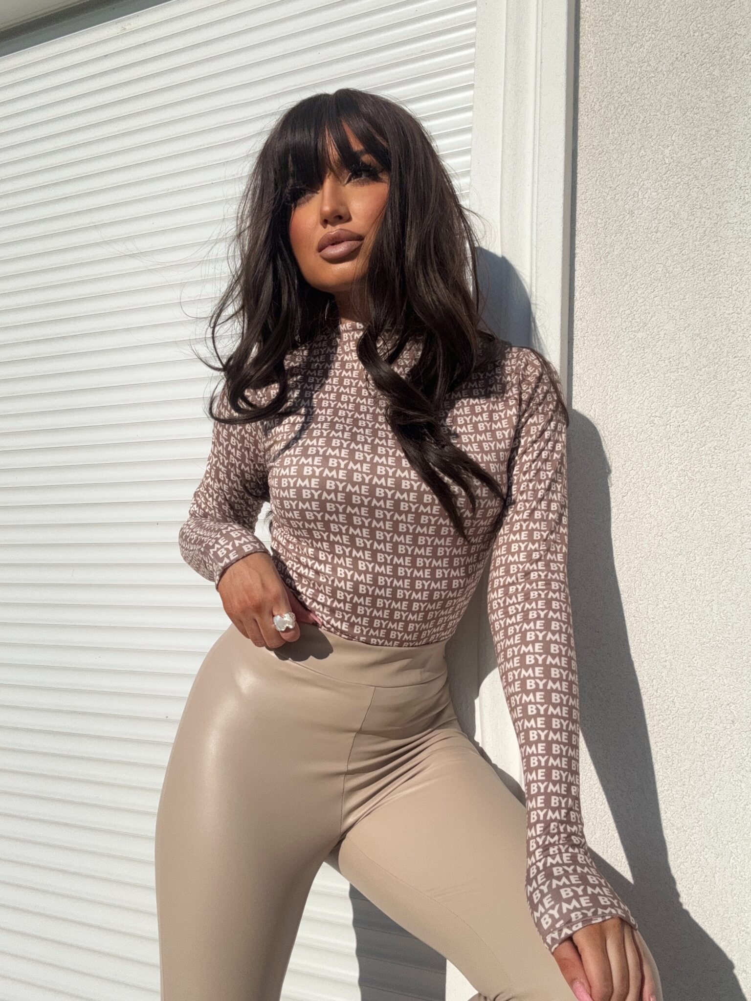 Kategoria: Bluzki Znaczników: białe logo, bluzka, By Me, delikatna stójka, długi rękaw, dopasowany krój, ecru-mokka, literki, logo, mokka, podszewka, przód i tył z delikatną podszewką, rękaw typu long sleeve, SKIN