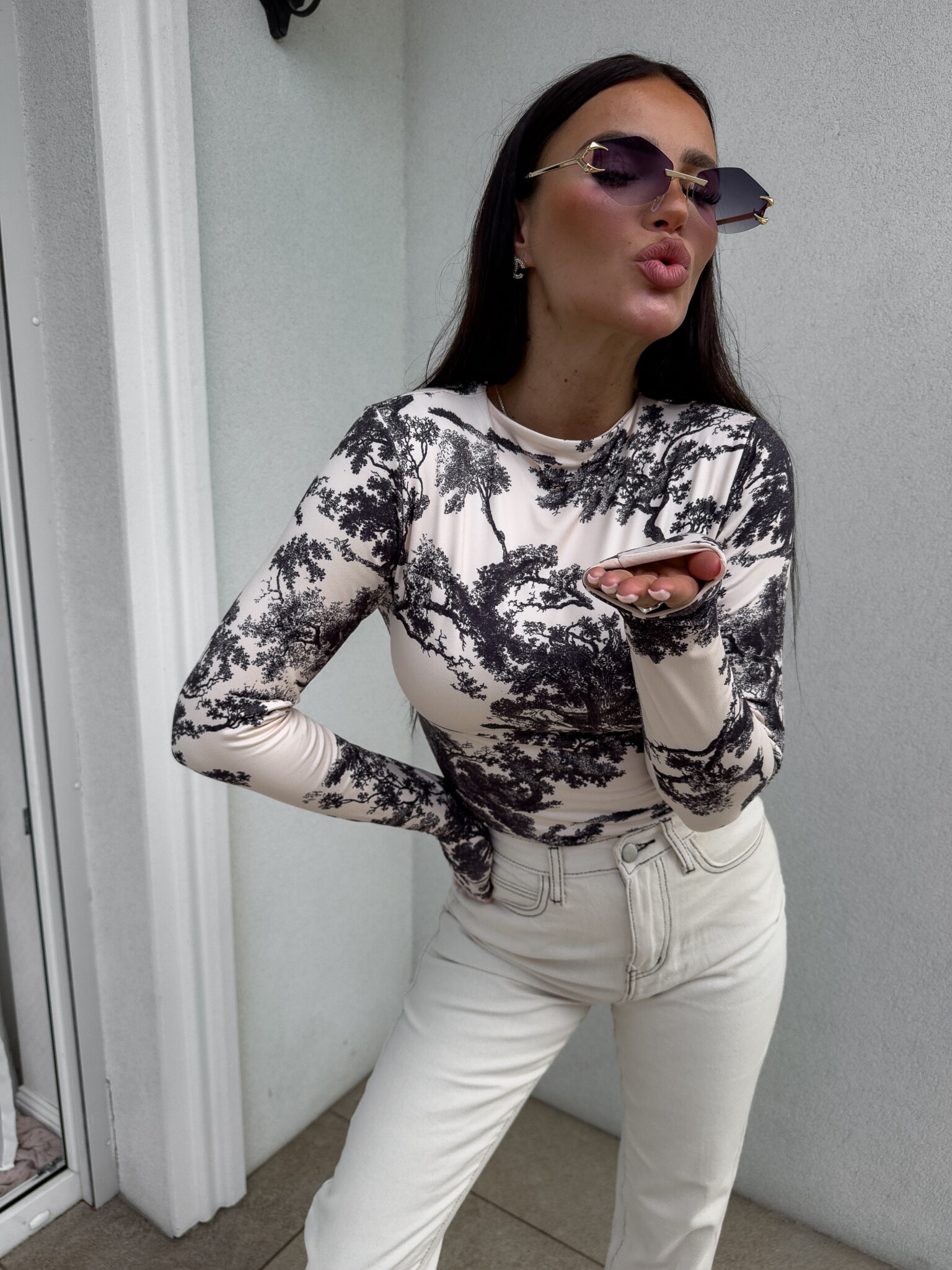 Bluzka SKIN o dopasowanym kroju wyróżnia się subtelną stójką i długim rękawem typu long sleeve. Przód i tył posiadają delikatną podszewkę, która zapobiega prześwitywaniu.