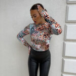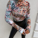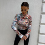 Bluzka SKIN print animal – miętowo – pomarańczowa By Me