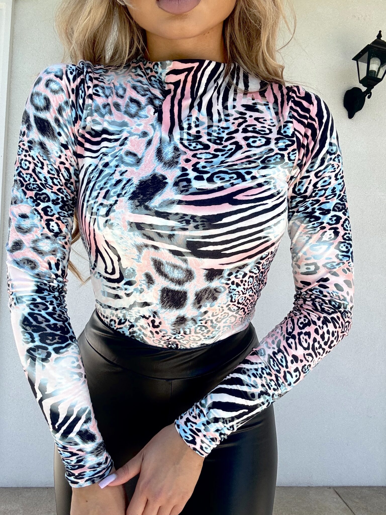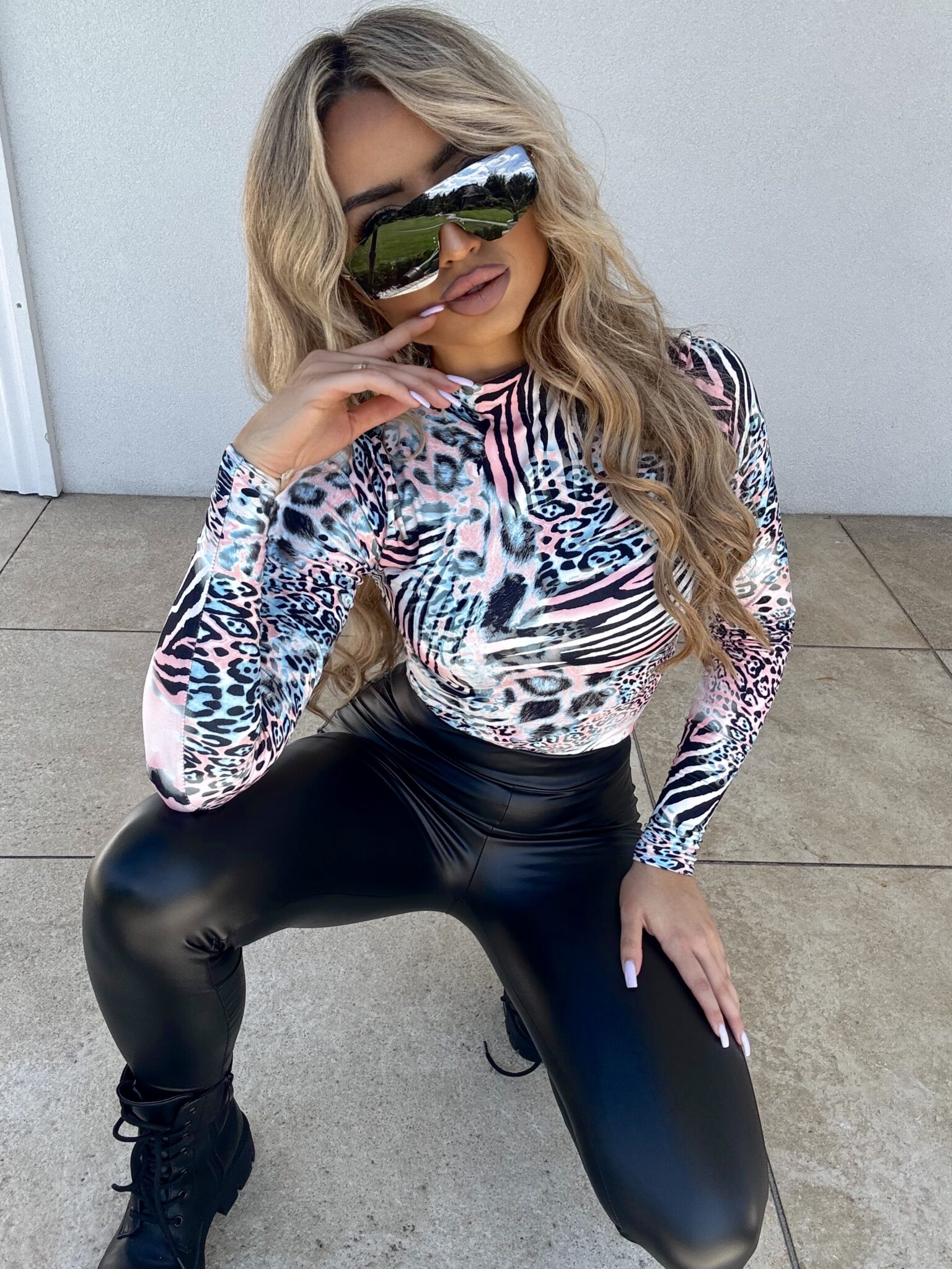 Bluzka SKIN print animal – niebiesko – pudrowy By Me