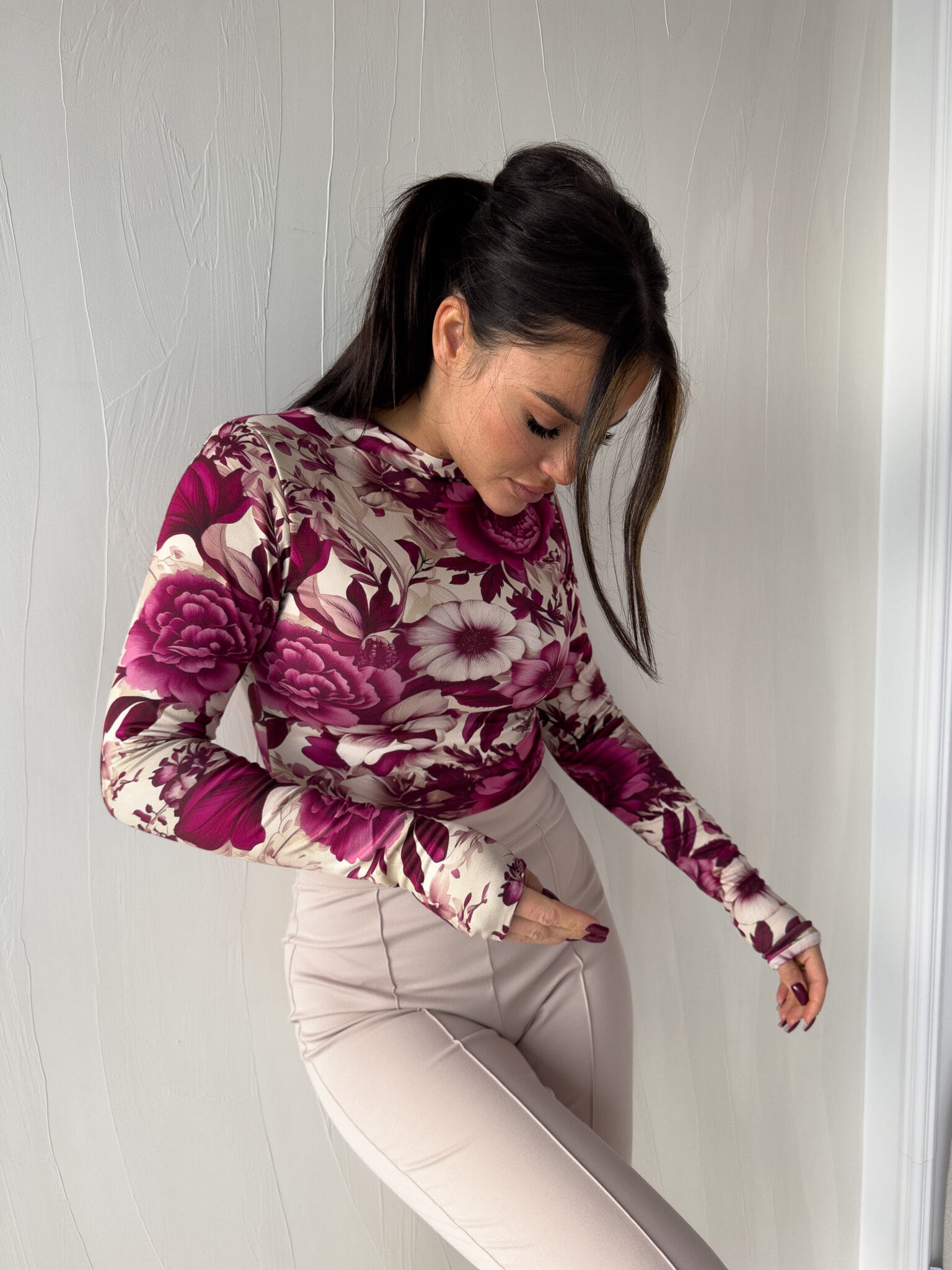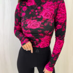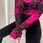 Bluzka SKIN print roses – czarno – fuksja