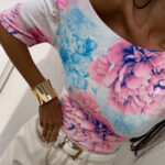 Bluzka UNIQUE wykonana jest z podwójnego, przyjemnego w dotyku materiału. Posiada dekolt w kształcie litery V, który subtelnie podkreśla okolice szyi i obojczyków. Można ją nosić na dwa sposoby – z dekoltem z przodu lub z tyłu.