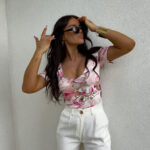 Bluzka UNIQUE wykonana jest z podwójnego, przyjemnego w dotyku materiału. Posiada dekolt w kształcie litery V, który subtelnie podkreśla okolice szyi i obojczyków. Można ją nosić na dwa sposoby – z dekoltem z przodu lub z tyłu.
