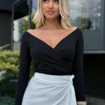 Bluzka w serek Marina – czarna