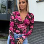 Bluzka w serek Marina – czarno – różowa kwiaty
