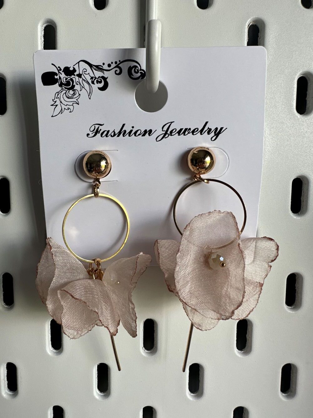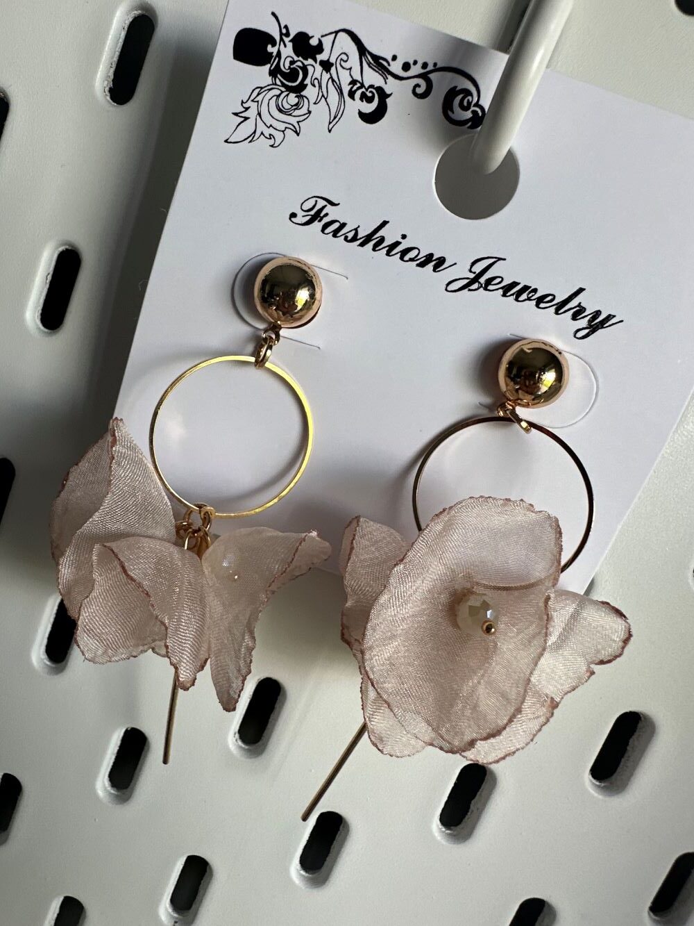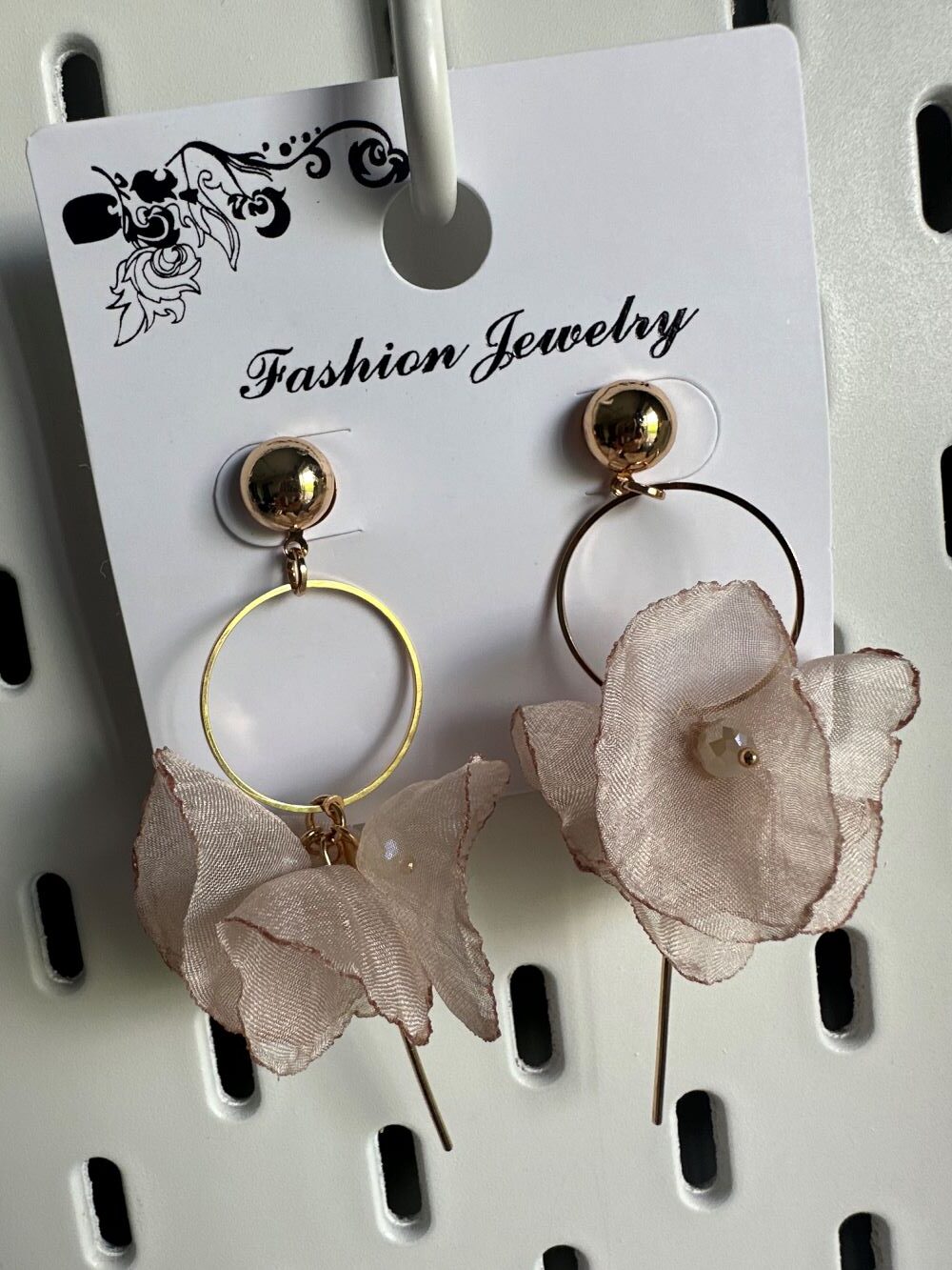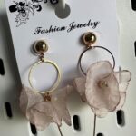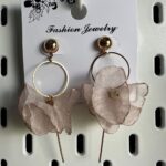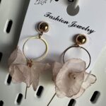 Kolczyki DZWONECZKI, wiszące, tiulowe, kolor beżowy, zapięcie w kolorze złotym. Zapinane są na sztyft. Kolczyki zakończone są czterema dzwoneczkami umocowanymi na złotym kółeczku z drucikiem. Wewnątrz dzwoneczków są ozdobne koraliki. To niesamowicie elegancki, piękny, zjawiskowy, delikatny i bardzo wygodny model lekkich, nieuczulających kolczyków. Z powodzeniem ubierzesz je do sukienek oraz innych okazjonalnych stylizacji. Prezentują się idealnie zarówno z krótkimi, jak i długimi włosami. Pokochasz je od pierwszego wejrzenia.