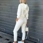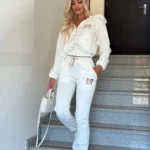 Dresowy komplet składa się ze spodni oraz rozpinanej bluzy z kapturem. Zarówno spodnie, jak i bluza mają ściągacze i ozdobione są logo, a całość wykonana jest z miękkiej, komfortowej bawełny.