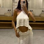 Komplet składający się z topu wiązanego na szyi i plecach oraz spódnicy maxi z gumką w pasie to stylowa i wygodna propozycja na lato. Regulowane wiązania pozwalają idealnie dopasować top do sylwetki. Zwiewna spódnica pięknie układa się na ciele, podkreślając figurę i zapewniając komfort noszenia przez cały dzień.