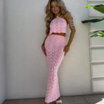 Komplet składający się z topu wiązanego na szyi i plecach oraz spódnicy maxi z gumką w pasie to stylowa i wygodna propozycja na lato. Regulowane wiązania pozwalają idealnie dopasować top do sylwetki. Zwiewna spódnica pięknie układa się na ciele, podkreślając figurę i zapewniając komfort noszenia przez cały dzień.