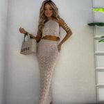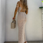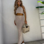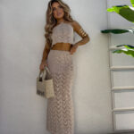 Komplet składający się z topu wiązanego na szyi i plecach oraz spódnicy maxi z gumką w pasie to stylowa i wygodna propozycja na lato. Regulowane wiązania pozwalają idealnie dopasować top do sylwetki. Zwiewna spódnica pięknie układa się na ciele, podkreślając figurę i zapewniając komfort noszenia przez cały dzień.