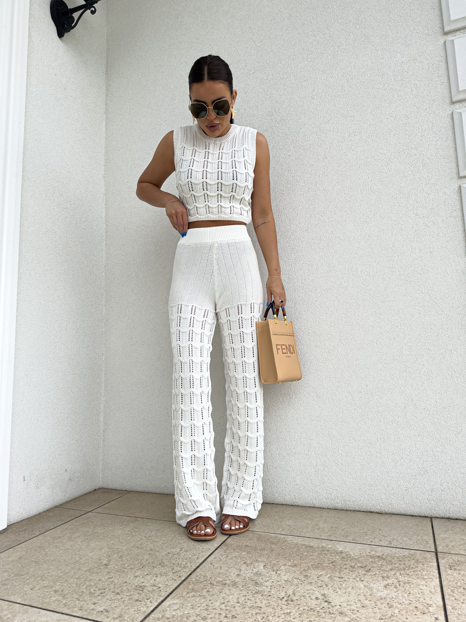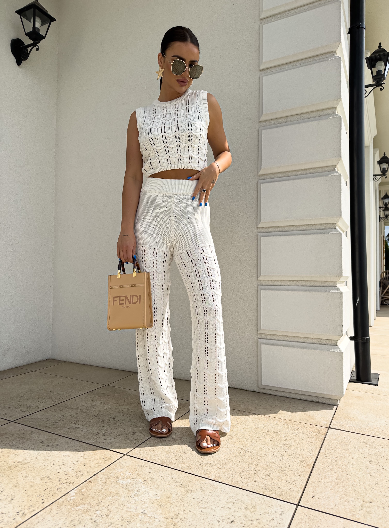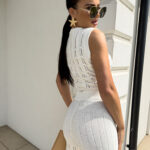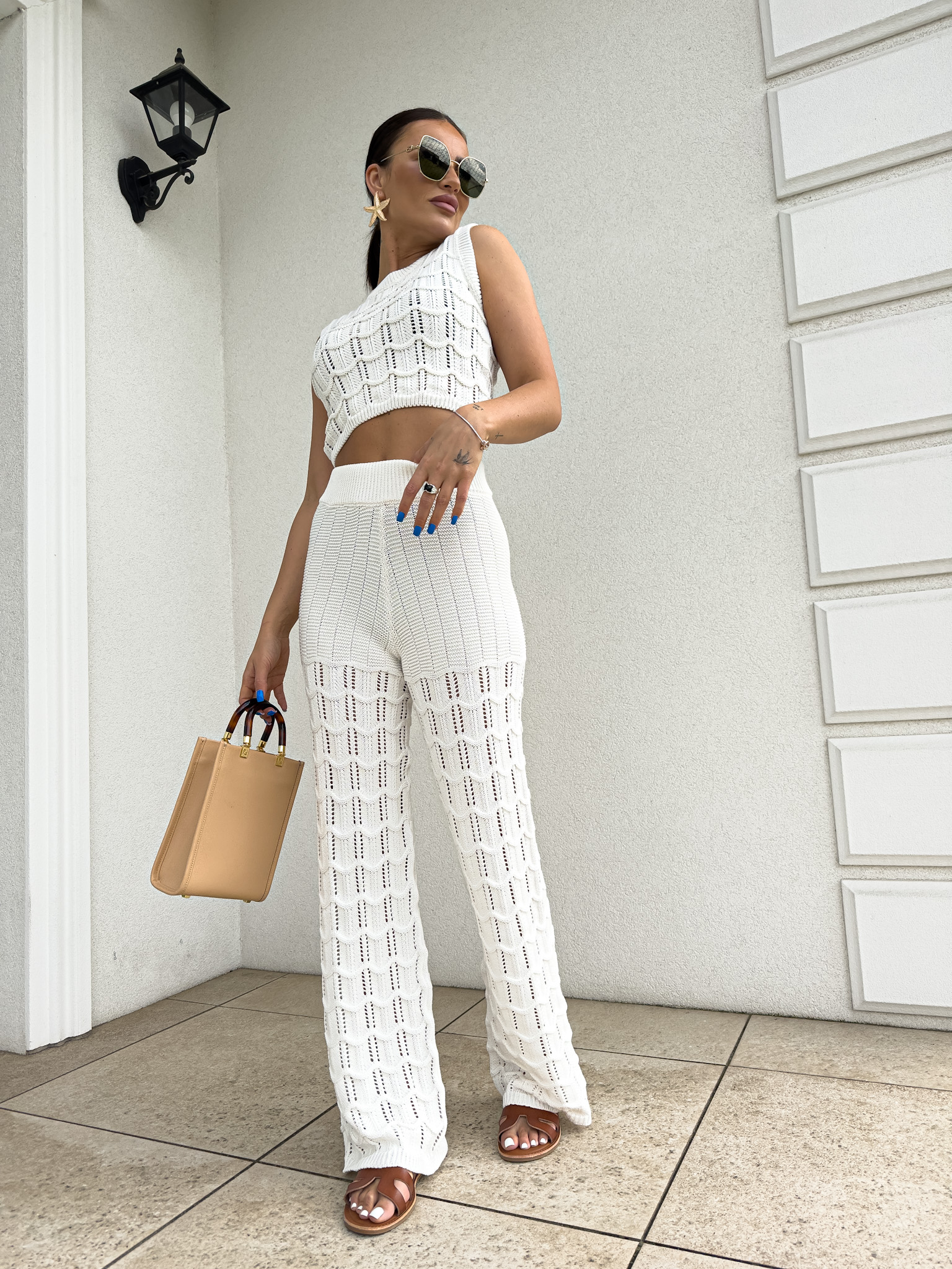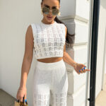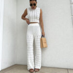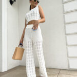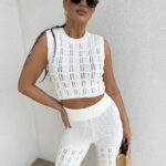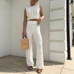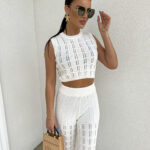 Komplet ażurowy z topem i spodniami z gumką w pasie to świetna propozycja na ciepłe dni. Delikatny wzór topu dodaje lekkości i subtelności, a miękki materiał zapewnia komfort i przewiewność. Spodnie z elastyczną gumką idealnie dopasowują się do sylwetki, gwarantując wygodę noszenia.
