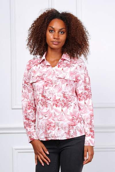 Koszula BEATA w czerwono – bordowe liście, posiada na przodzie 2 kieszonki, długi rękaw