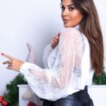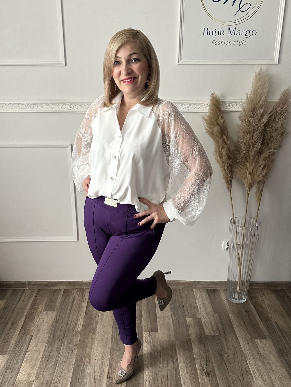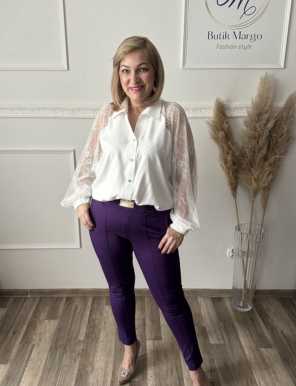 Koszula ENRICA, elegancka koszula z kołnierzykiem oraz koronkowymi rękawami w kolorze białym. Posiada długi, szeroki rękaw zakończony szerszym ściągaczem gumkowym. Rękawy wykonane są z miękkiej, przezroczystej koronki. Zapinana na ozdobne guziczki z cyrkoniami srebrnymi. Krój koszuli jest luźny. Szykowna, elegancka, lekka i zwiewna, modna koszula uszyta z wysokiej jakości materiału według najnowszego trendu w modzie. Idealna do eleganckich spodni, spódnic, spódnico-szortów. Koszula w tym modelu, to doskonały wybór do skomponowania stylizacji na zbliżające się święta Bożego Narodzenia oraz do pracy w biurze lub urzędzie. Jej wyjątkowość sprawia, że nie oderwiemy od niej wzroku.