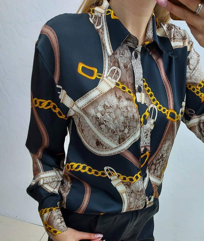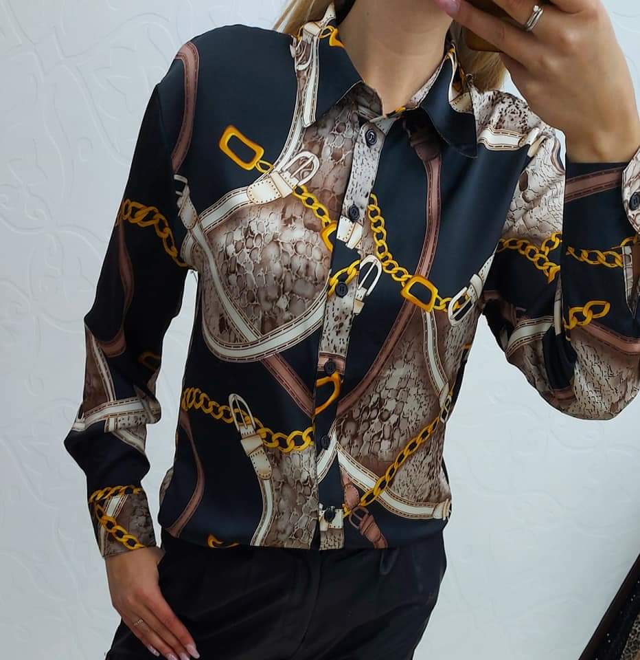 Koszula KELLY koloru czarnego z łańcuchami, długi rękaw