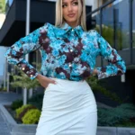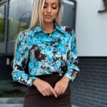 Koszula MARINA brązowo – błękitna