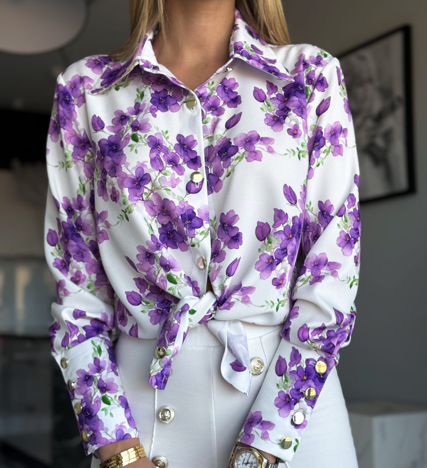 Koszula MARINA to elegancki model o prostym kroju, zapinany na złote guziki. Długie rękawy zakończone mankietami ze złotym wykończeniem dodają jej szyku. Wykonana z wysokiej jakości, niemnącego materiału, gwarantuje komfort noszenia. Kolor pozostaje intensywny nawet po wielokrotnym praniu.
