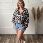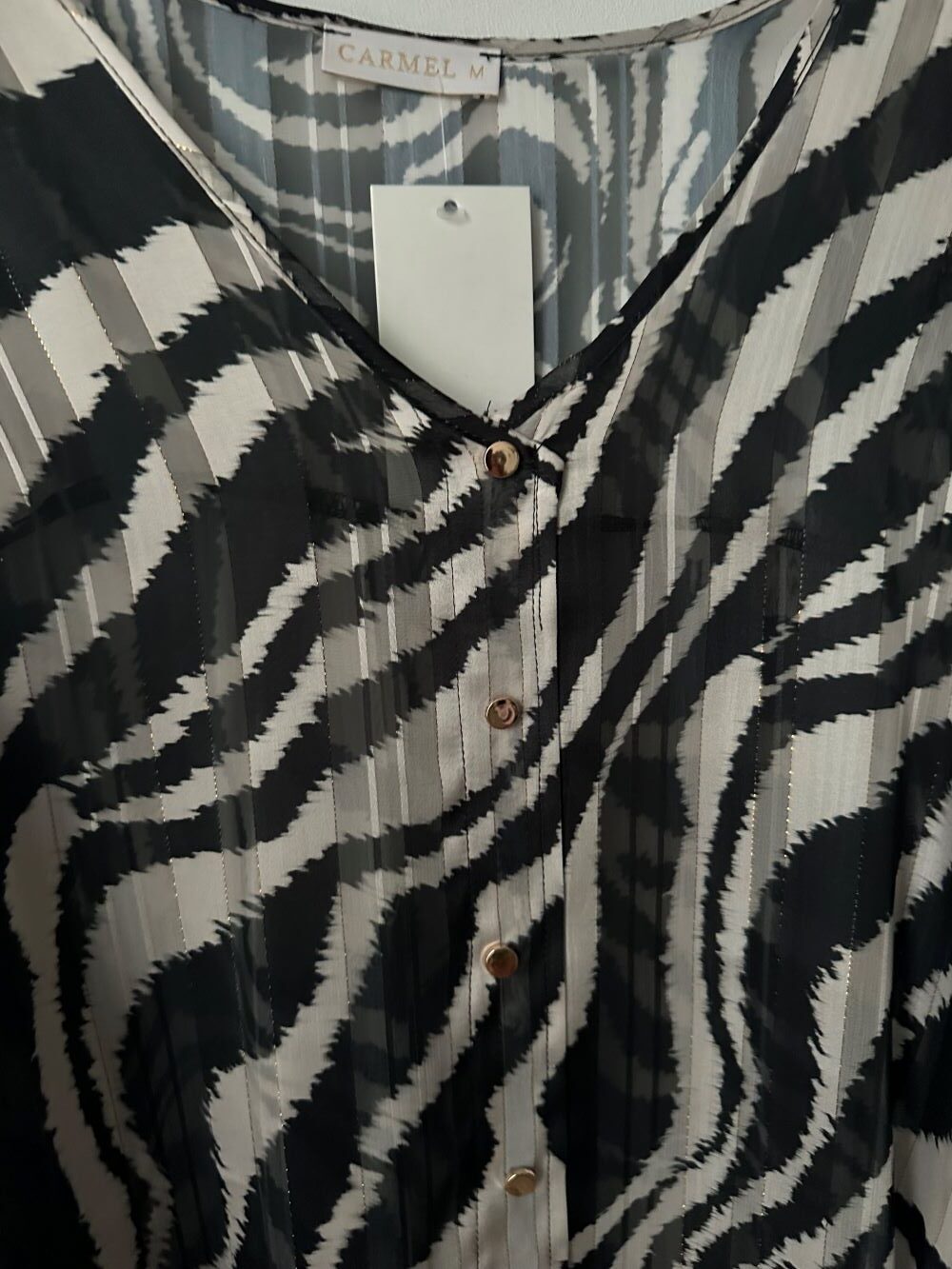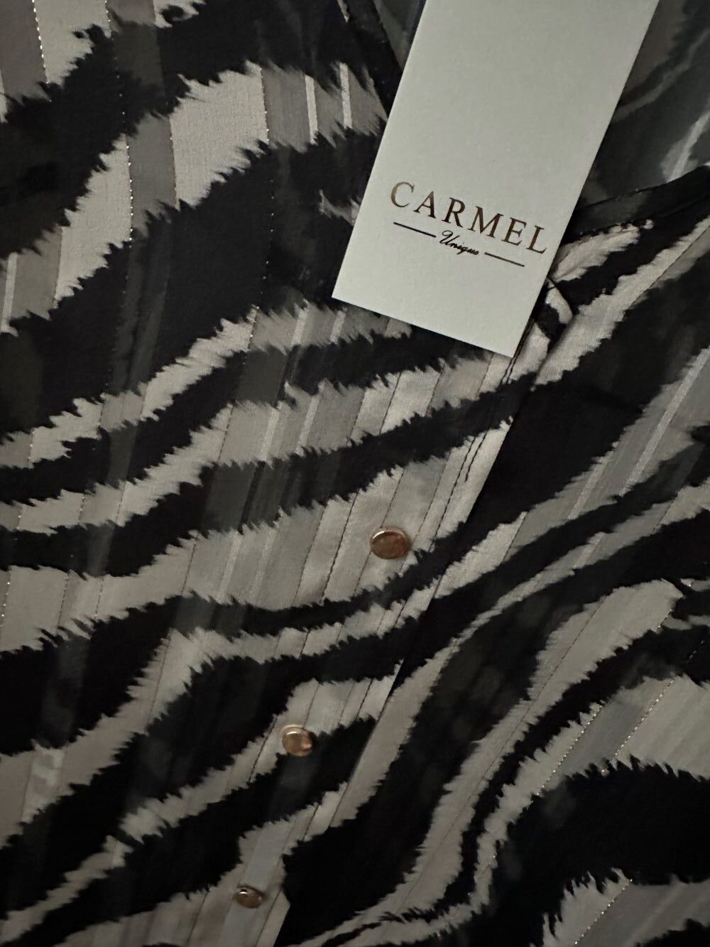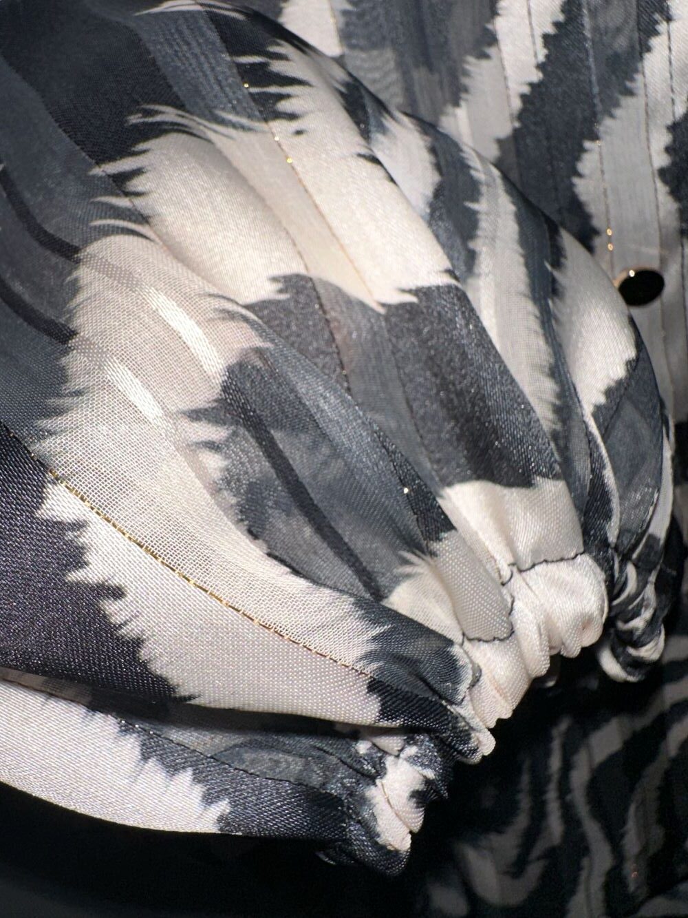 Ta zwiewna, szyfonowa koszula MOLLY wykonana z niegniotącego materiału to must-have w Twojej garderobie! Idealna do sportowych i eleganckich stylizacji, zapewnia wszechstronność i wygodę. Możesz ją przewiązać w pasie lub puścić luźno, dostosowując do swojego stylu. Delikatne gumeczki w rękawach dodają lekkości, a złote napy tworzą zjawiskowe wykończenie.