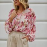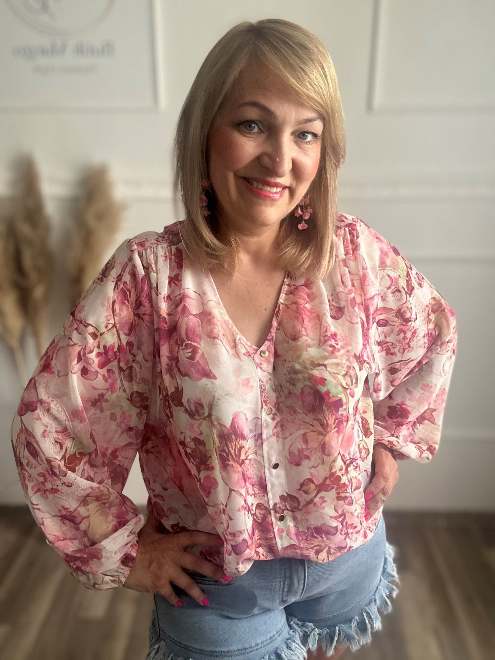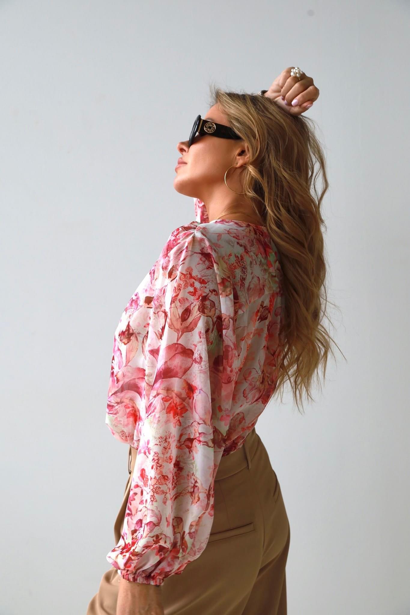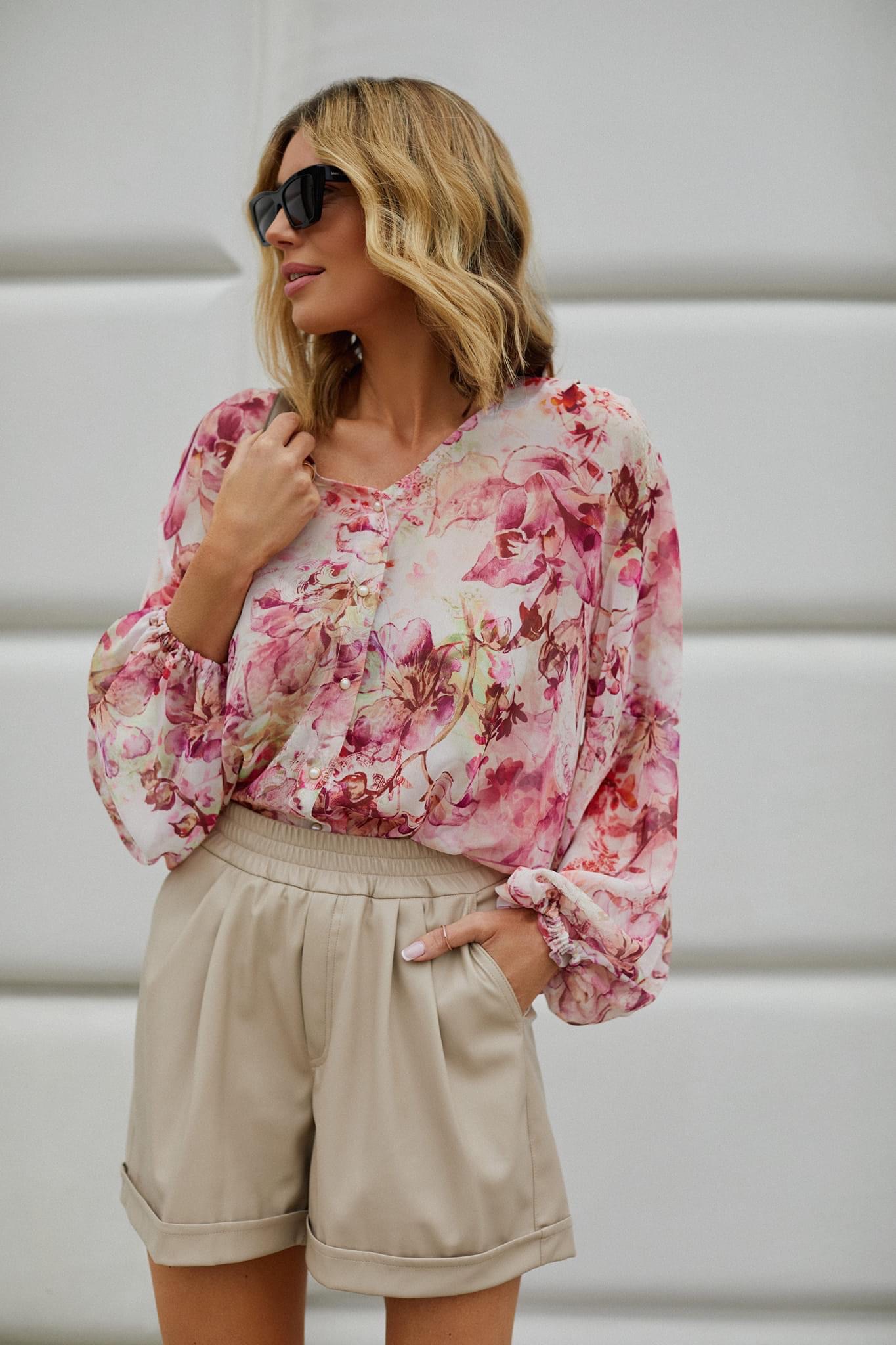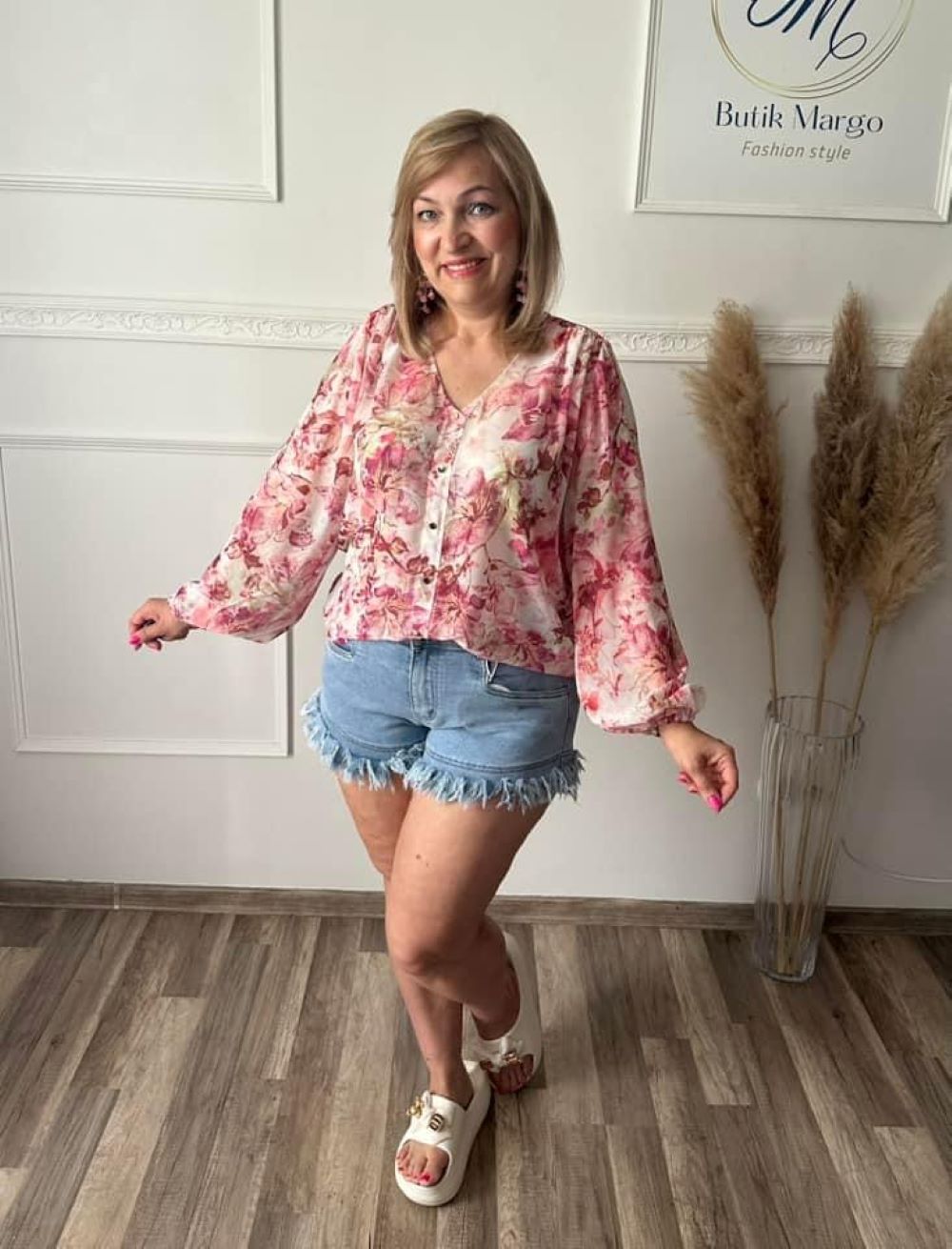 Ta zwiewna, szyfonowa koszula MOLLY wykonana z niegniotącego materiału to must-have w Twojej garderobie! Idealna do sportowych i eleganckich stylizacji, zapewnia wszechstronność i wygodę. Możesz ją przewiązać w pasie lub puścić luźno, dostosowując do swojego stylu. Delikatne gumeczki w rękawach dodają lekkości, a złote napy tworzą zjawiskowe wykończenie.