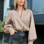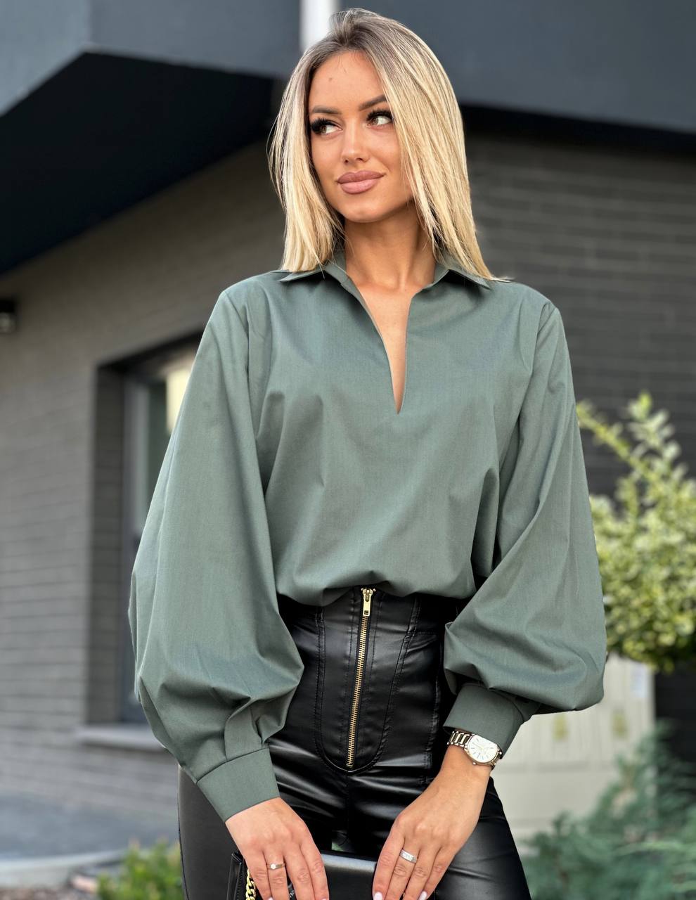 Elegancka koszula bawełniana z bufiastym rękawem to uniwersalny model, który dopełni wiele stylizacji. Klasyczny krój z dekoltem w kształcie litery V, kołnierzykiem i mankietami zapinanymi na ozdobne guziki dodaje jej szyku.