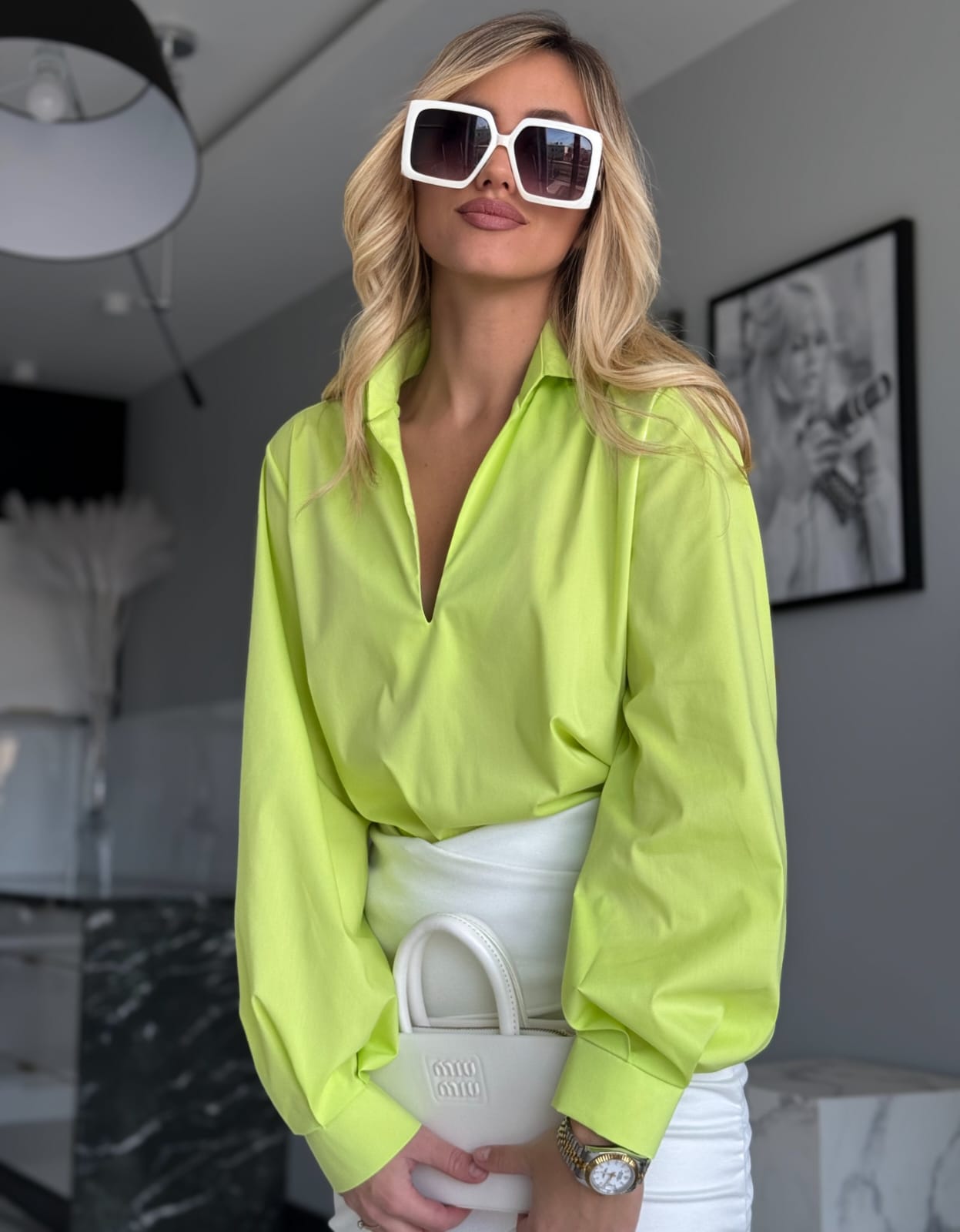 Elegancka koszula bawełniana z bufiastym rękawem to uniwersalny model, który dopełni wiele stylizacji. Klasyczny krój z dekoltem w kształcie litery V, kołnierzykiem i mankietami zapinanymi na ozdobne guziki dodaje jej szyku.