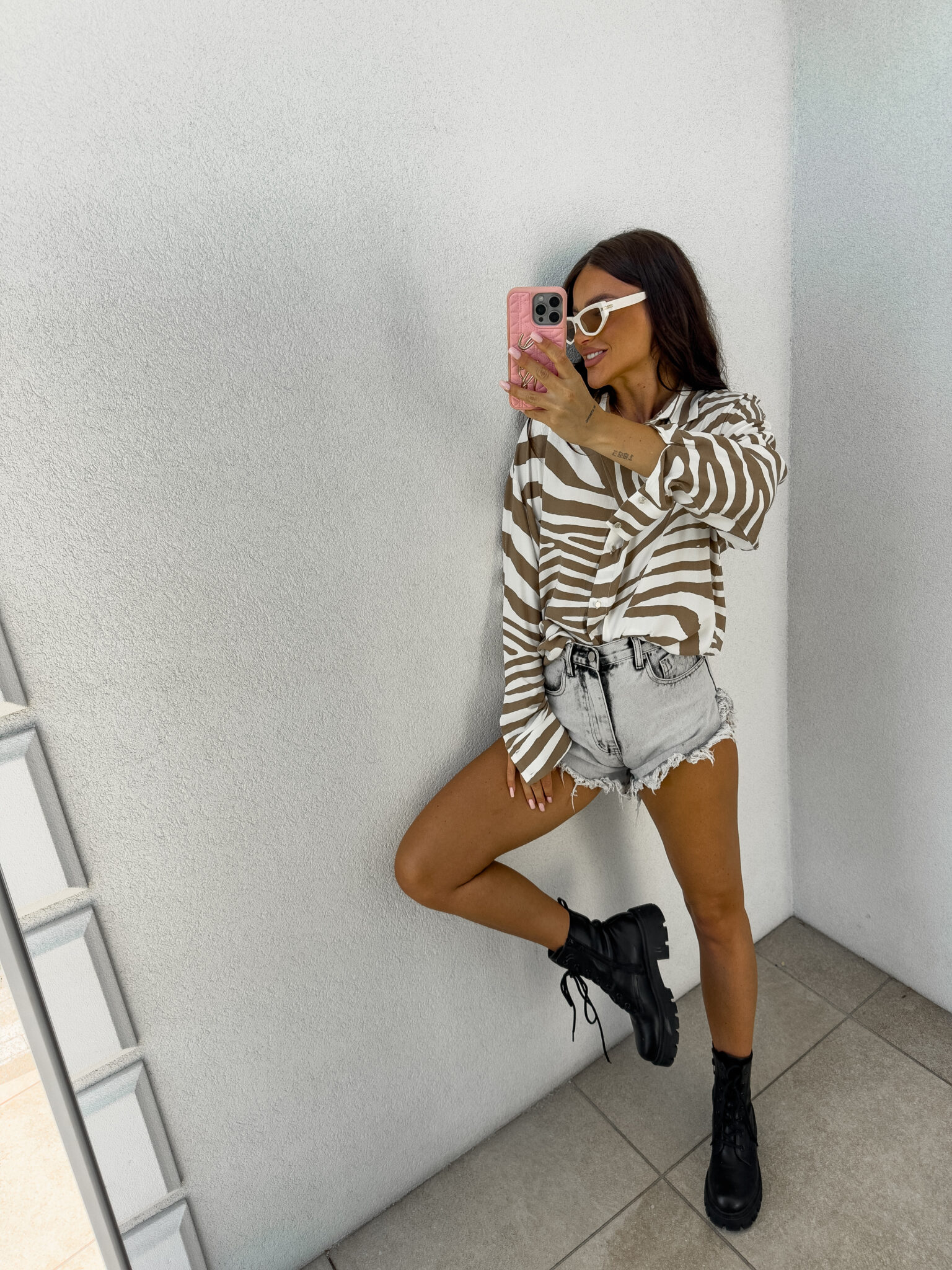 Koszula OVER AUTUMN print zebra – beżowo – ecru