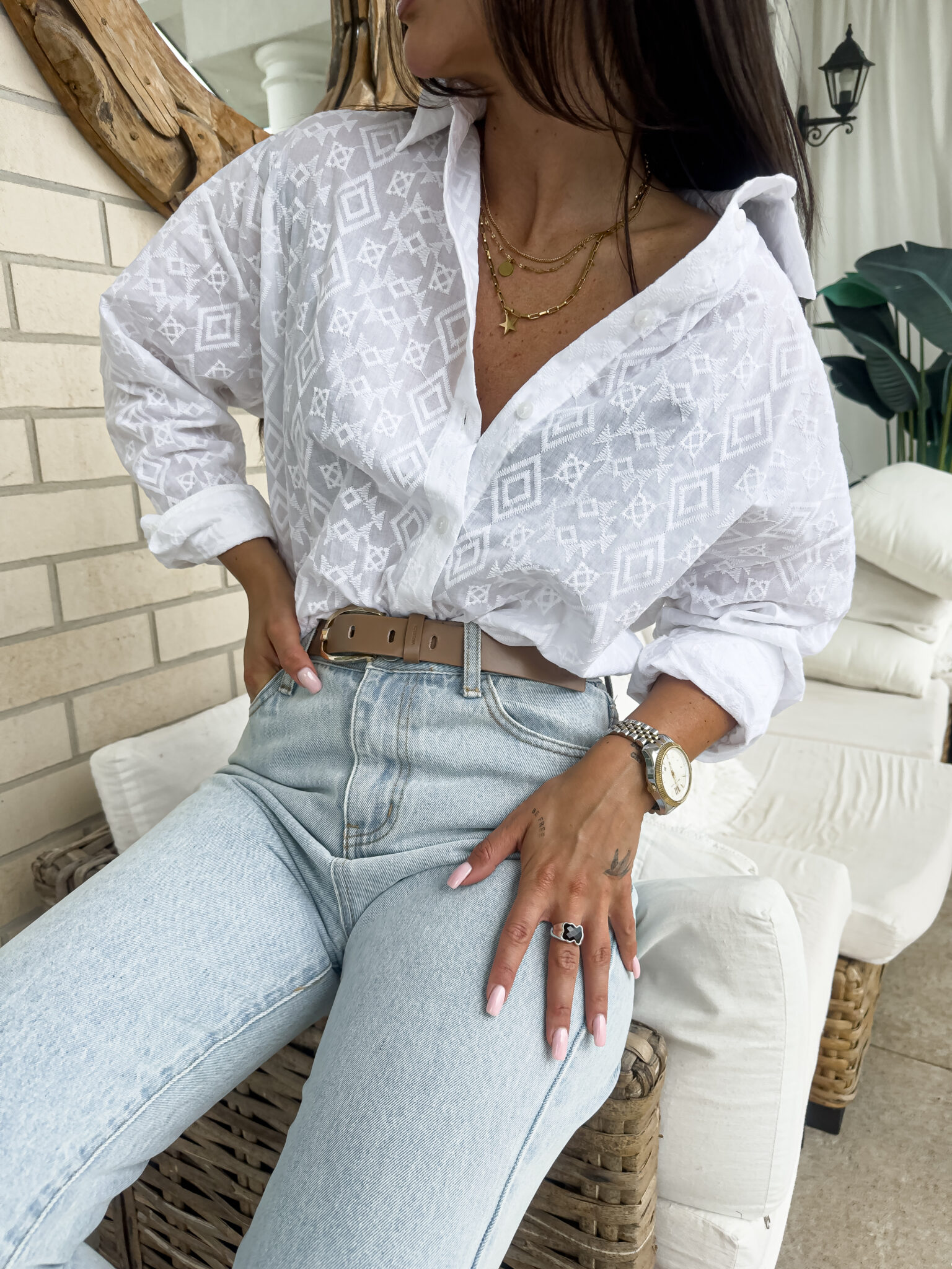 Koszula OVER bawełna romby – białe