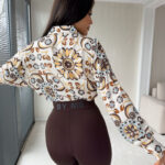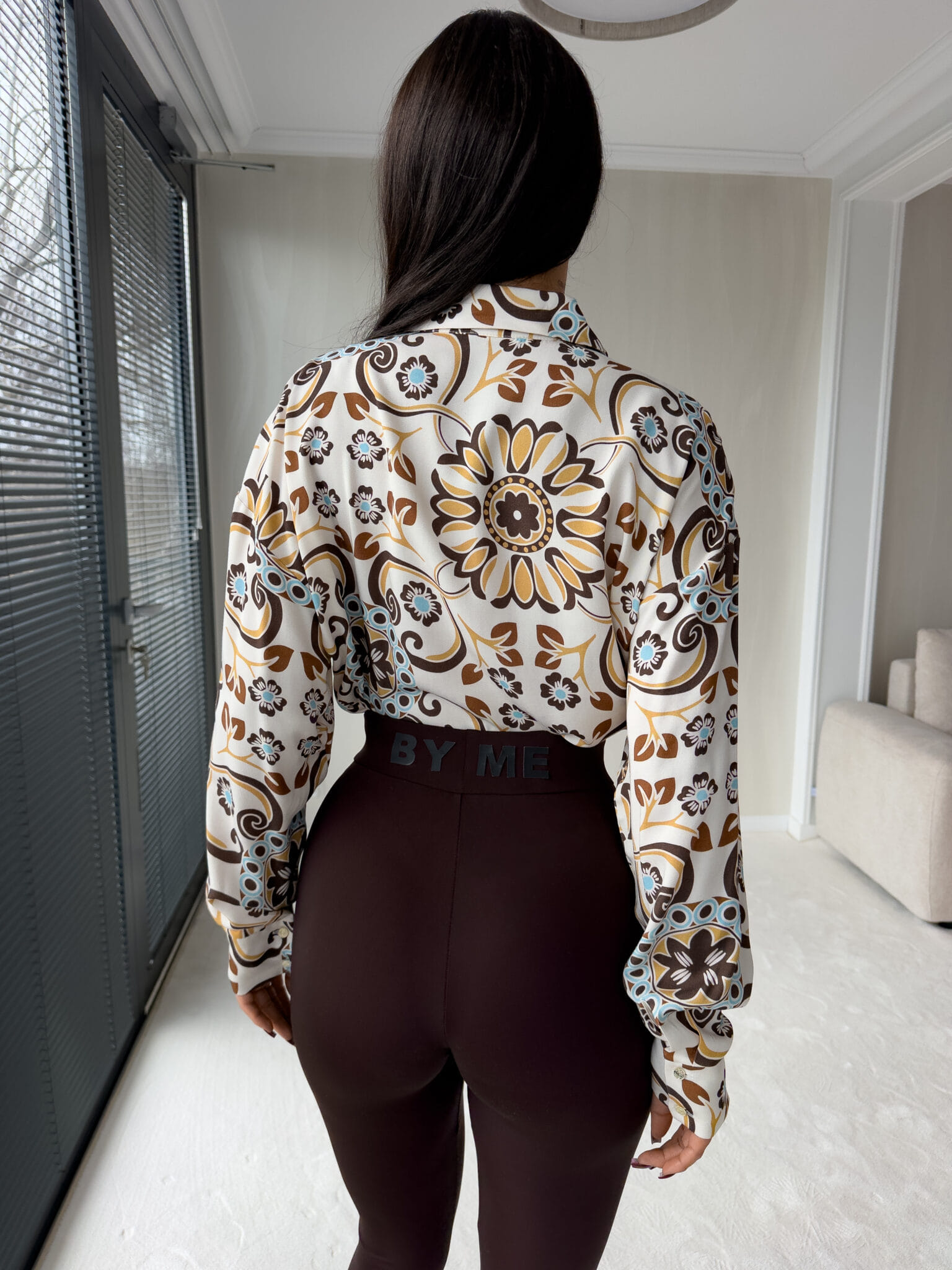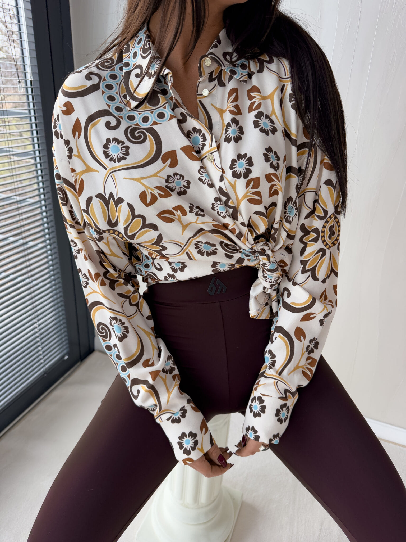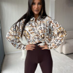 Koszula OVER SPRING – ecru – czekoladowa