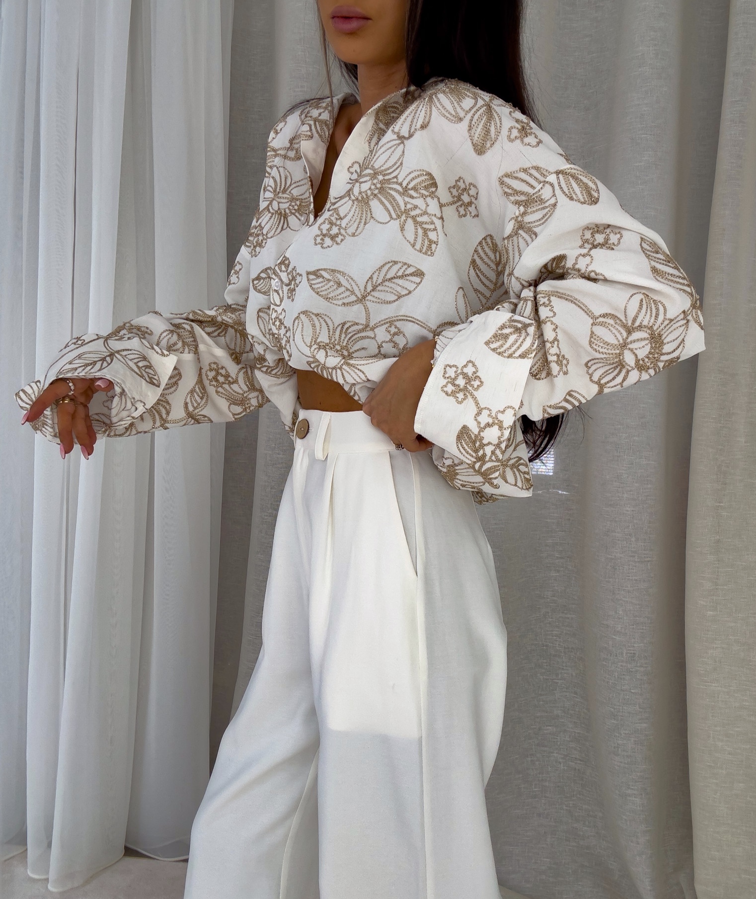 Koszula OVER wyróżnia się luźnym, komfortowym krojem i regulowanym zapięciem na guziki. Materiał jest lekko gryzący.