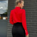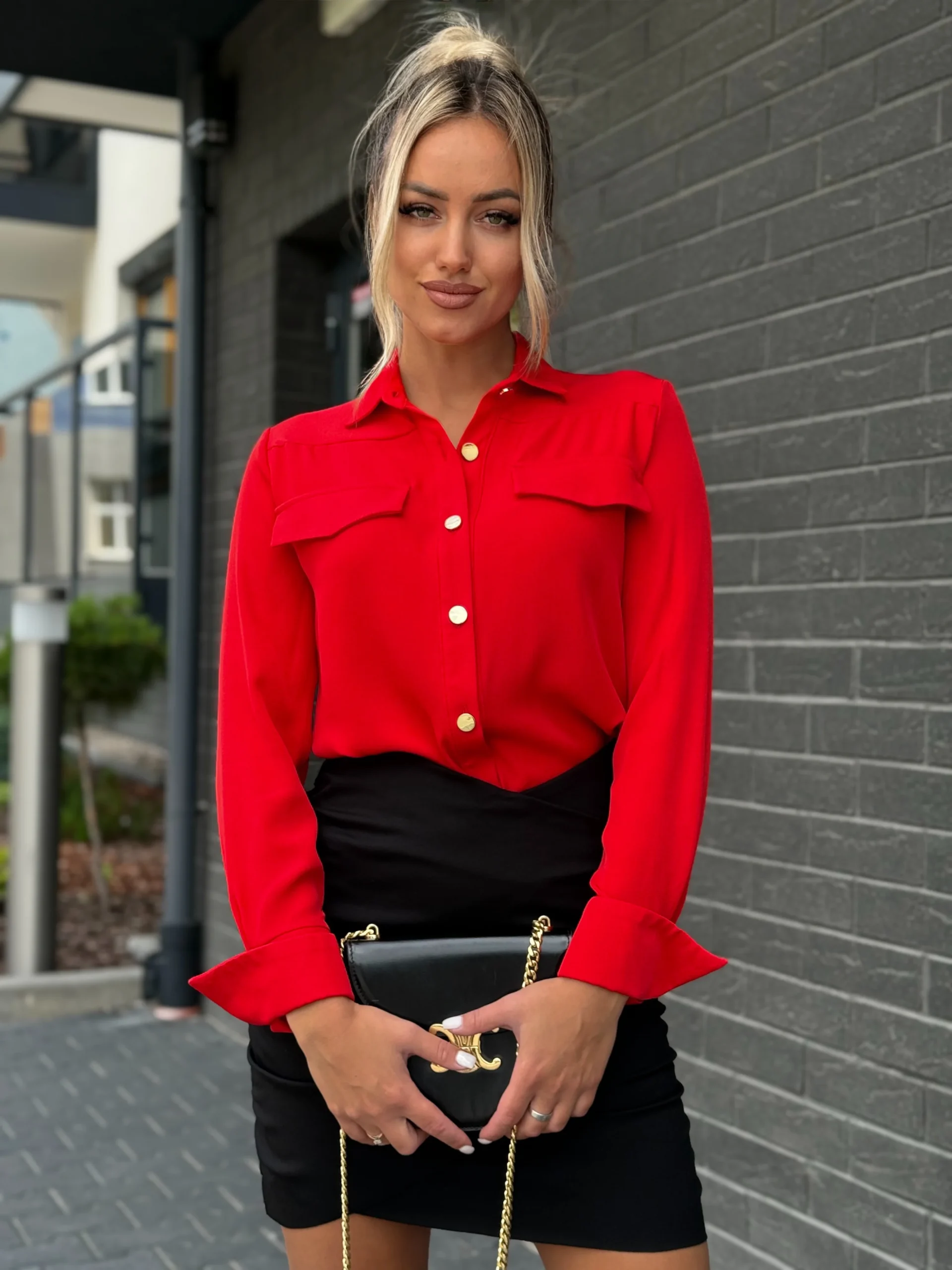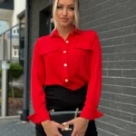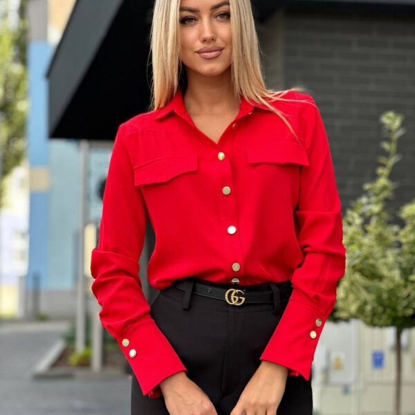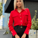 Koszula MARINA to elegancki model o prostym kroju, zapinany na złote guziki. Długie rękawy zakończone mankietami ze złotym wykończeniem dodają jej szyku. Wykonana z wysokiej jakości, niemnącego materiału, gwarantuje komfort noszenia. Kolor pozostaje intensywny nawet po wielokrotnym praniu.