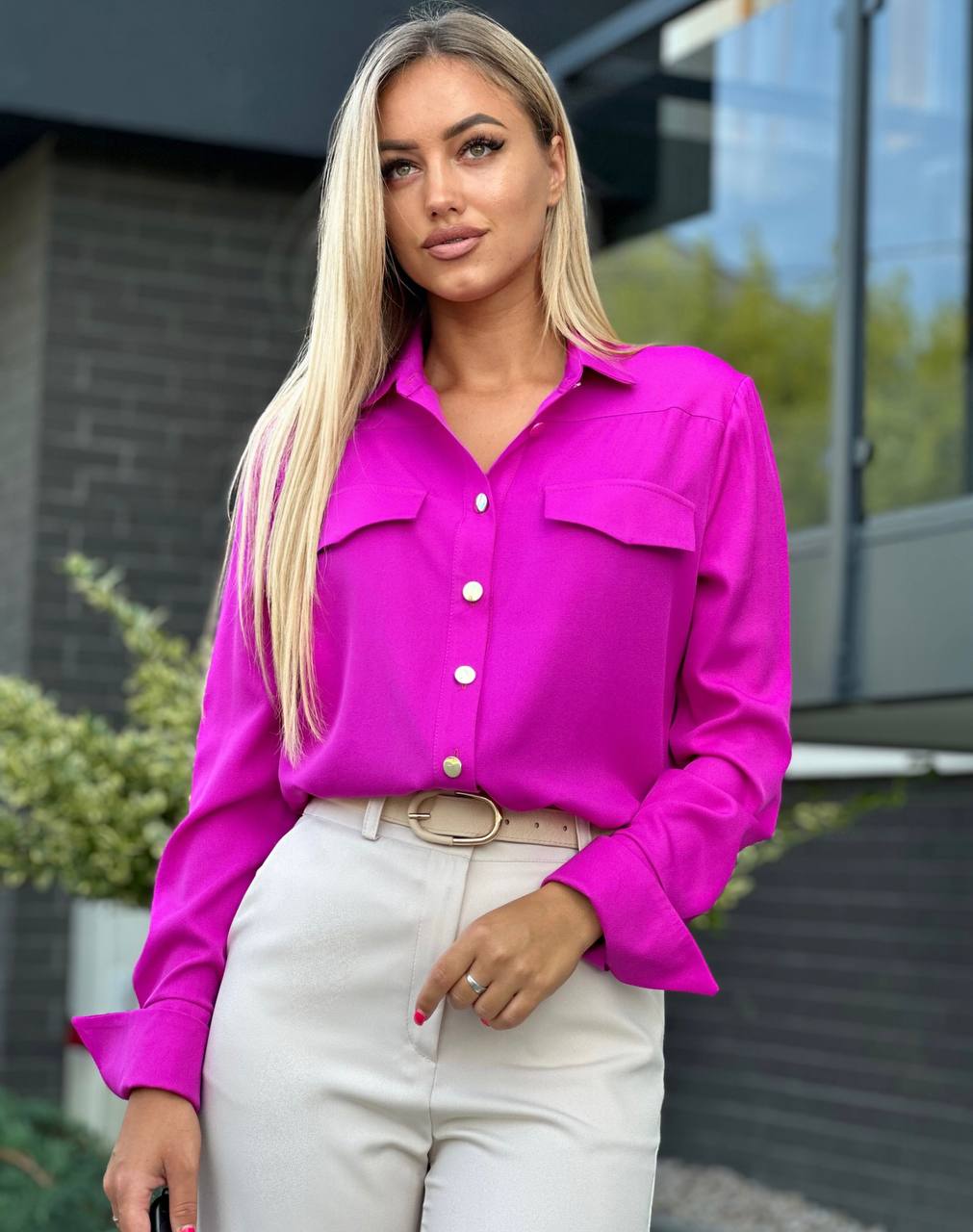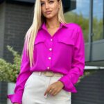 Koszula MARINA to elegancki model o prostym kroju, zapinany na złote guziki. Długie rękawy zakończone mankietami ze złotym wykończeniem dodają jej szyku. Wykonana z wysokiej jakości, niemnącego materiału, gwarantuje komfort noszenia. Kolor pozostaje intensywny nawet po wielokrotnym praniu.