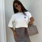 Spódniczka uszyta z podwójnego, elastycznego materiału idealnie dopasowuje się do sylwetki. W pasie znajduje się elastyczna gumka, która zapewnia komfort i odpowiednie dopasowanie.
