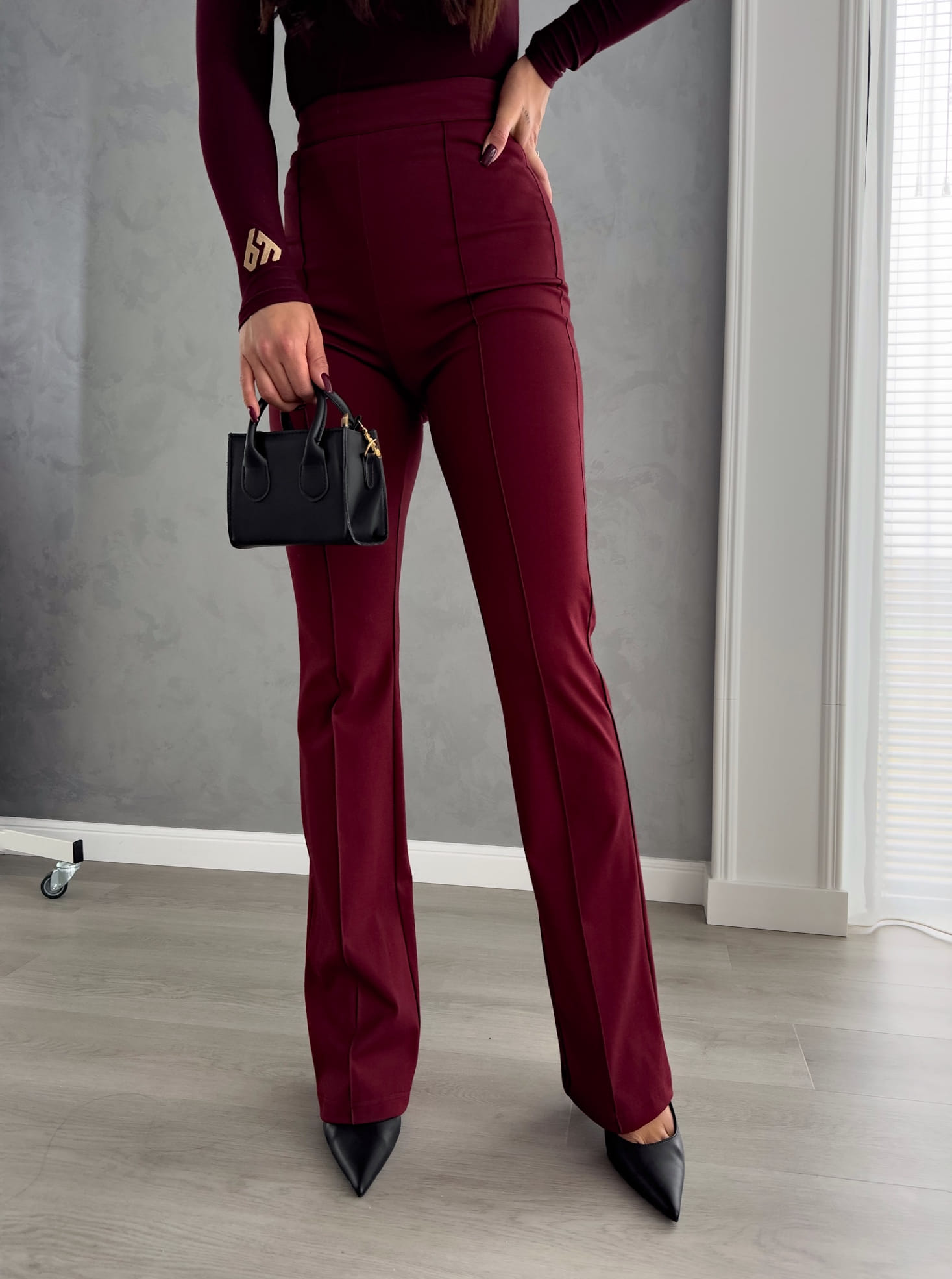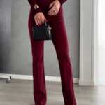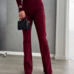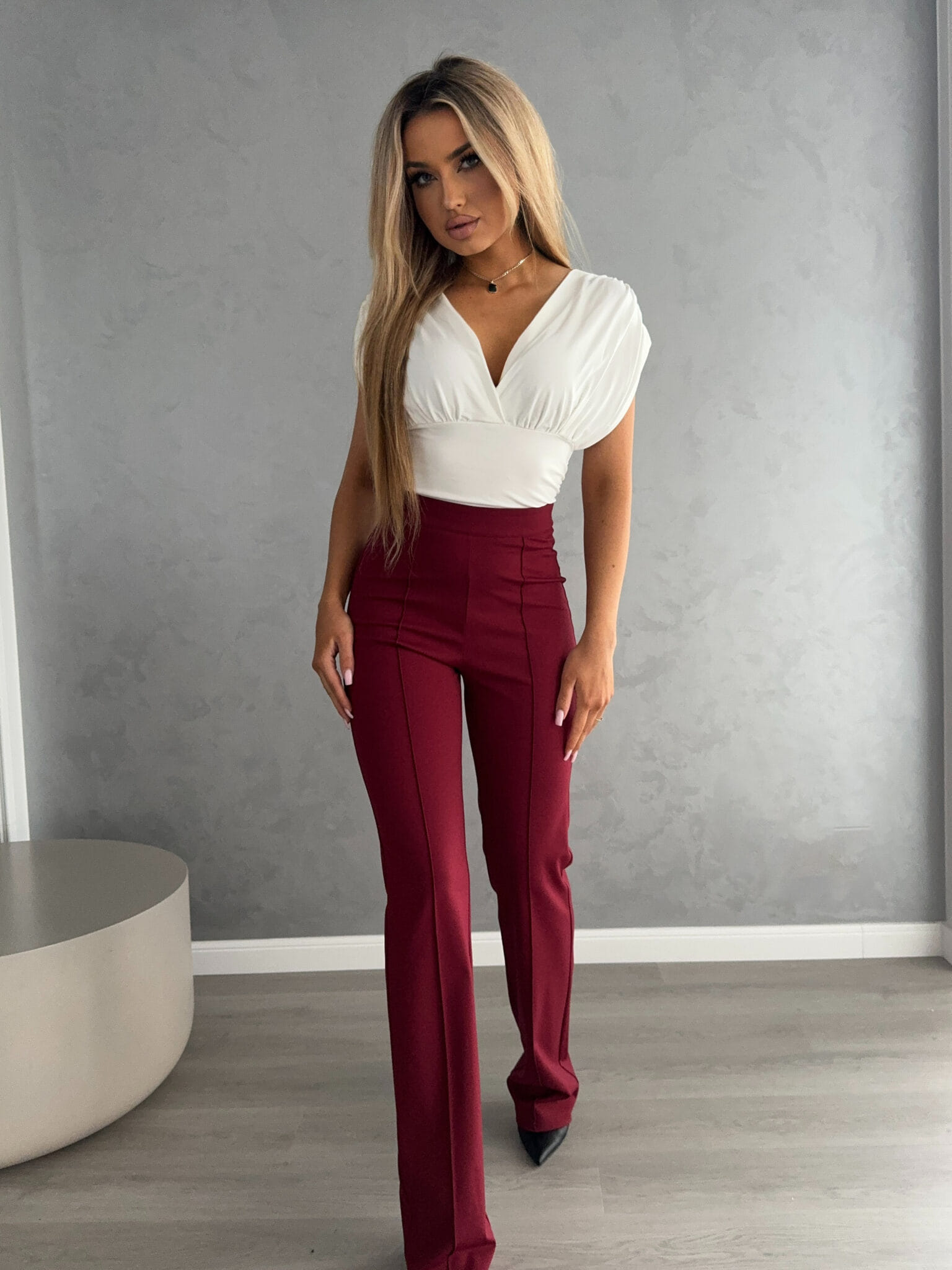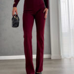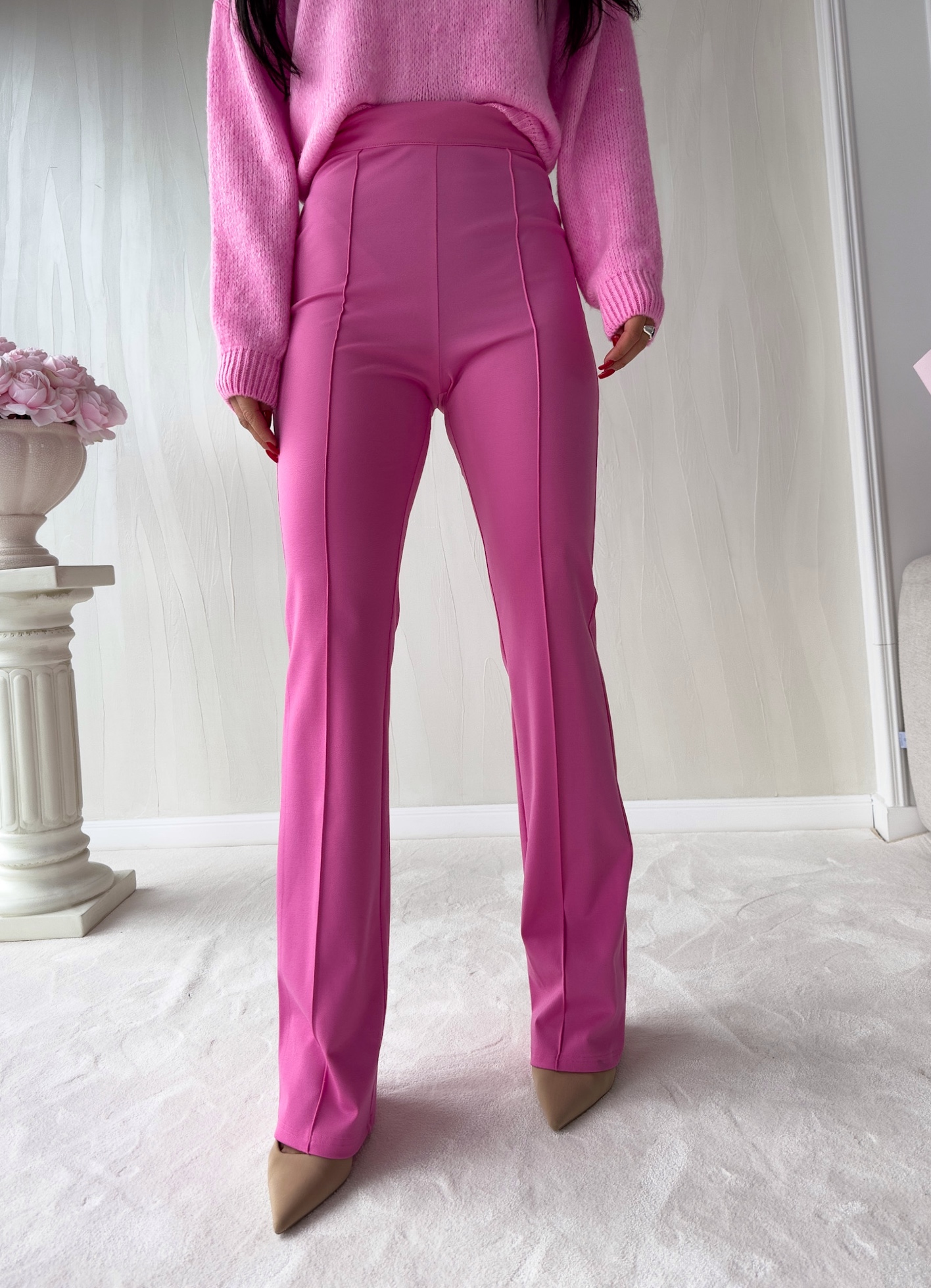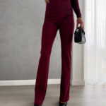 Spodnie z luźnymi, rozszerzającymi się ku dołowi nogawkami ozdobione pionowym przeszyciem.