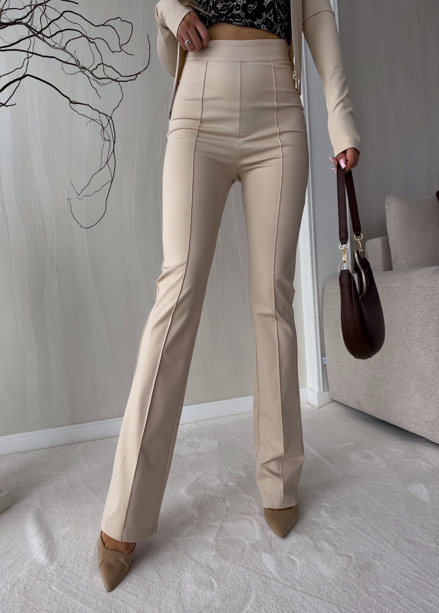 Spodnie DZWONY – jasny beż