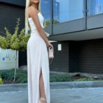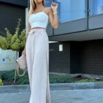 Spódnico-spodnie z wysokim stanem wykonane z lekkiego, zwiewnego materiału to stylowa i wygodna propozycja na cieplejsze dni. Posiadają efektowne rozcięcia po bokach, szerokie nogawki oraz zapięcie na guzik od środka i wiązanie z boku.